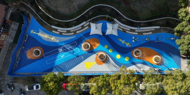 “改造后,我们采用高回弹塑胶地面,更安全;器材与彩色塑胶地面突出了运动属性,与虹口德必运动LOFT及周边商业更配套;我们还增加了植物景观花坛,可坐下,可观赏;增加与居民区之间的大型植物与小灌木,相当于为相邻小区新建了一道‘隔音墙’。”广中路街道相关负责人介绍,“本次提升的定位还是‘居民运动体育公园’,所以适配人群主要为老年人和儿童,希望能迎合他们的健身运动需求。”