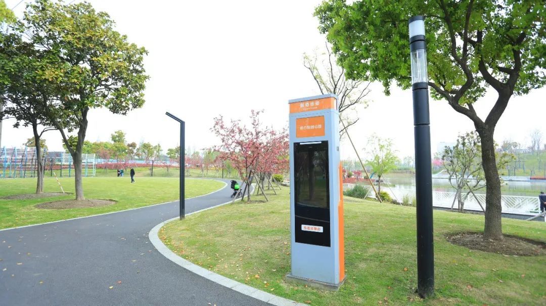 名为“科创公园”,园内有不少科创特色,如路面采用透水铺装,随处可见的雨水花园,最有科创特色的要数智慧步道系统了,它利用“互联网+体育”方式,为市民健身锻炼提供新项目新服务。1台运动互动大屏、4台智慧步道信息采集柱及1台心率采集和1套小型气象站,组成了这套智慧步道系统的全部。