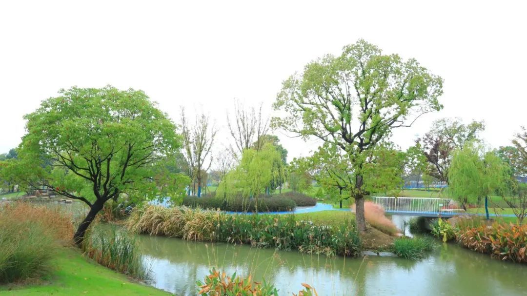 从中春路入口进去,发现它最大的特色是,既改造提升原有环境,又保留了自然的原始地貌,池塘边、老树下、河岸旁,驳岸透着自然郊野的气息,新建现代简约的桥梁,又能让人轻松走近。