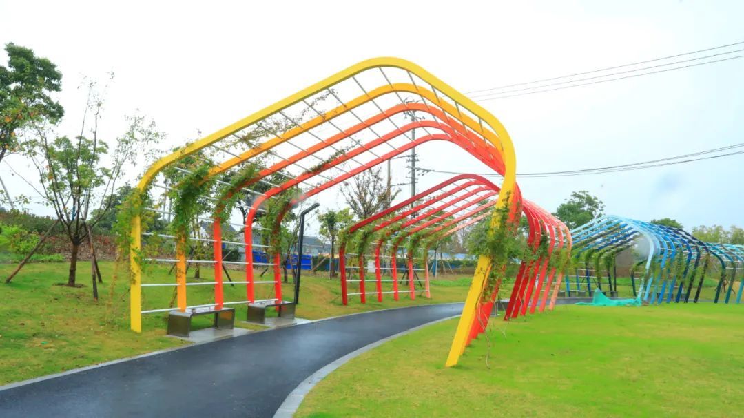 区绿园所项目负责人介绍,乔木采用朴树、乌桕、榉树、枫香、栾树、无患子、墨西哥落羽杉等,花灌木类包含杨梅、帚桃、美人梅、海棠、紫薇、凌霄,还有金叶锦带花、穗花牡荆、南天竹、棣棠、花叶小丑火棘等小灌木。有意的“造园”使自然村落跟现代园林浑然天成。这样的景观随处可见。