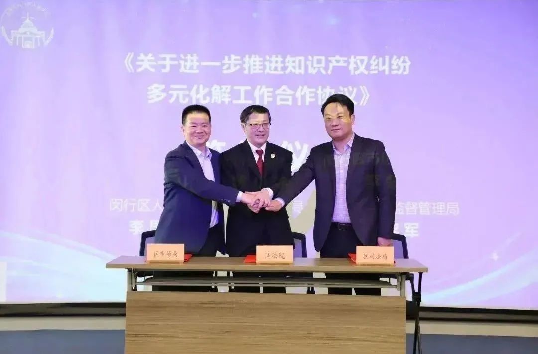 该协议为服务闵行区“一南一北”发展战略,构建闵行区知识产权纠纷多元化解决机制,有效整合行政机关的组织优势和人民法院的专业优势,充分发挥人民调解在预防、化解知识产权领域矛盾纠纷中的重要作用。