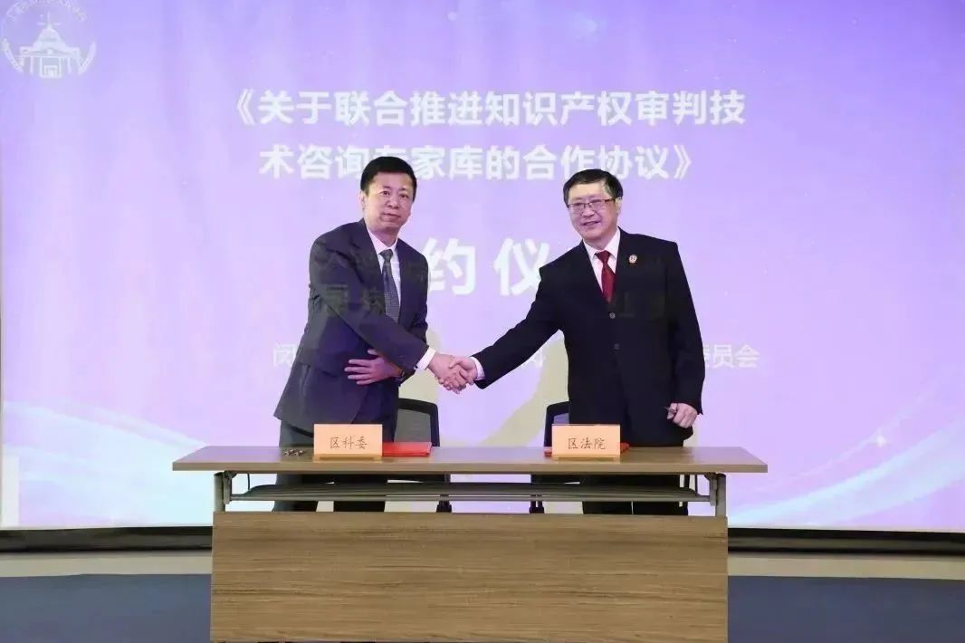 为加强知识产权审判专业化建设,完善多元化技术事实查明机制,上海闵行法院党组成员、副院长李国泉与闵行区科学技术委员会党组书记、主任徐豪作为成员单位代表签订《技术咨询专家库合作协议》,通过设立知识产权技术专家名册,助力上海闵行法院建立知识产权审判技术专家咨询机制,提升知识产权案件审判质效。