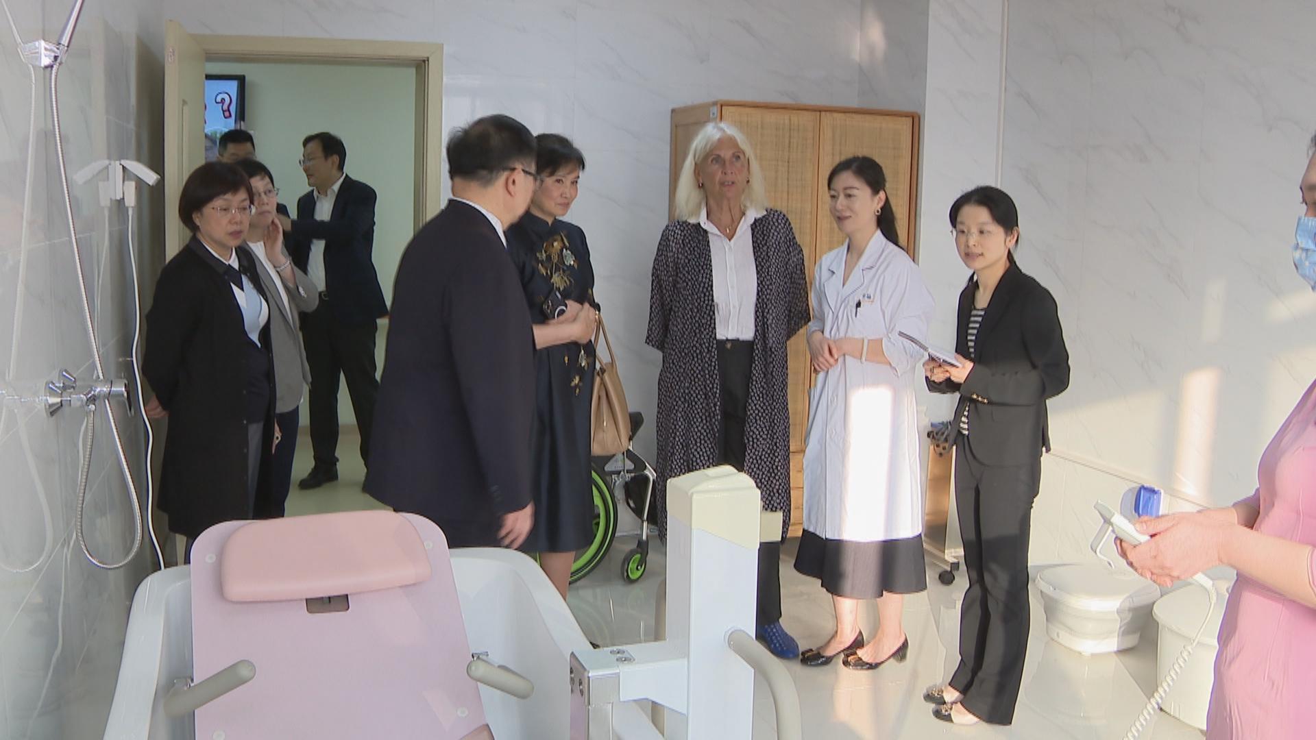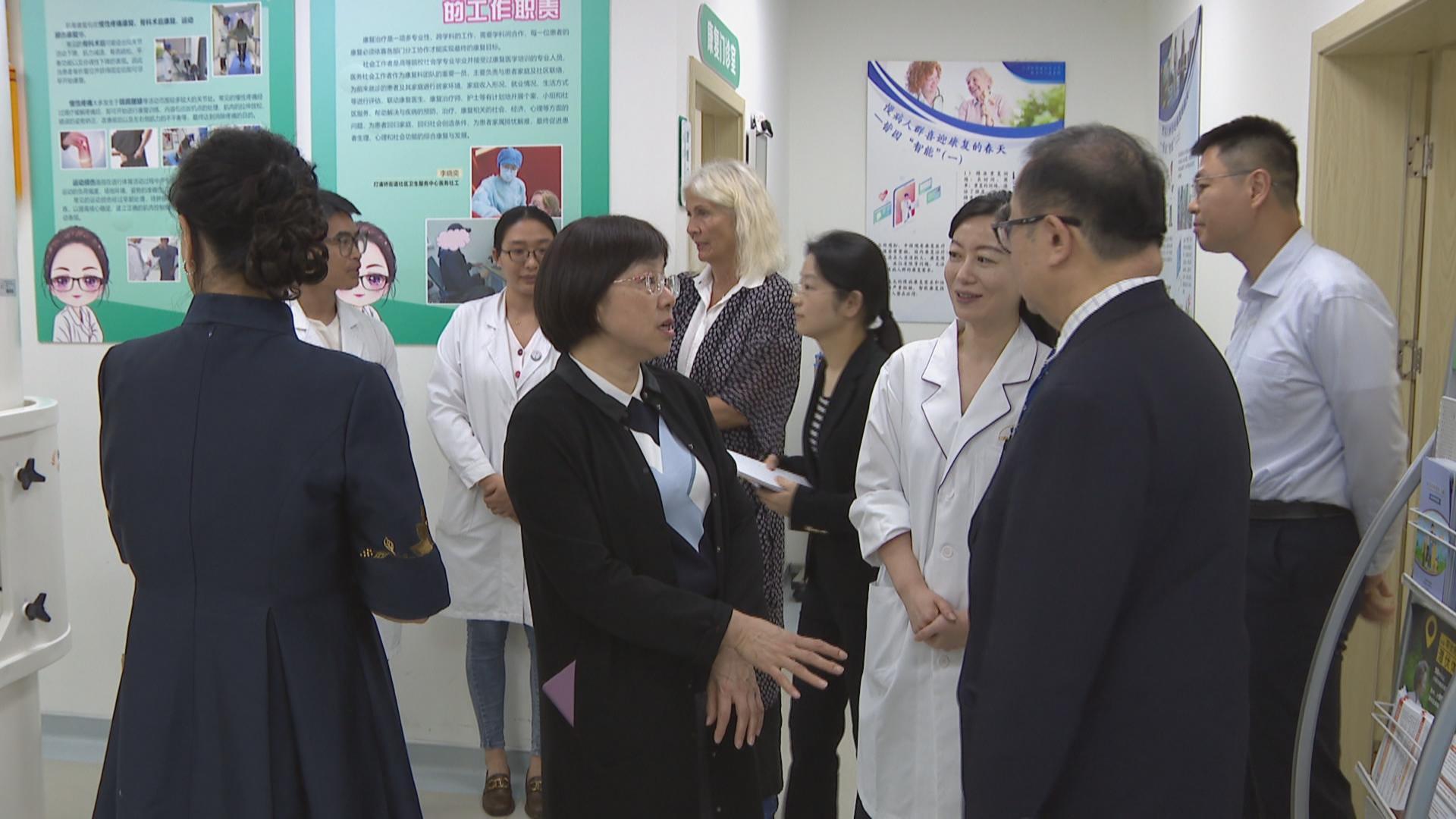 WONCA主席一行首先参观了门诊大厅音乐岛、驿心会客室、慢性病健康管理支持中心、全科带教门诊、示范性康复中心、联合病房及实训基地等,对中心的驿心文化建设和健康科普氛围,以及慢病数据智慧化管理和实训基地建设给予了高度的认可和赞赏。参访团详细了解了高质量家庭医生签约服务、社区康复服务开展情况及康复四级网络建设,并对中药馆中医药创新品牌和特色中医适宜技术产生了浓厚的兴趣。在联合病房,特色助浴系统、天轨悬吊康复训练系统、安宁疗护等也给参访团留下了深刻的印象,他们高度赞赏了中心的人文关怀细节和对患者全周期的康复管理。
