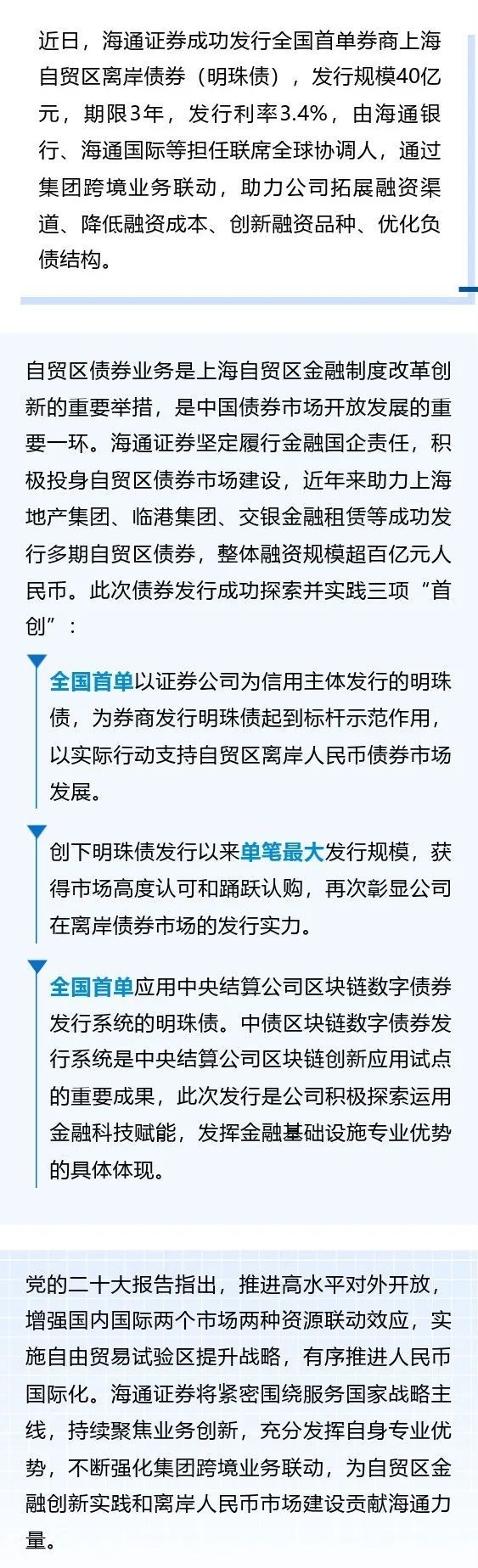 海通证券成功发行全国首单券商上海自贸区离岸债券(明珠债)