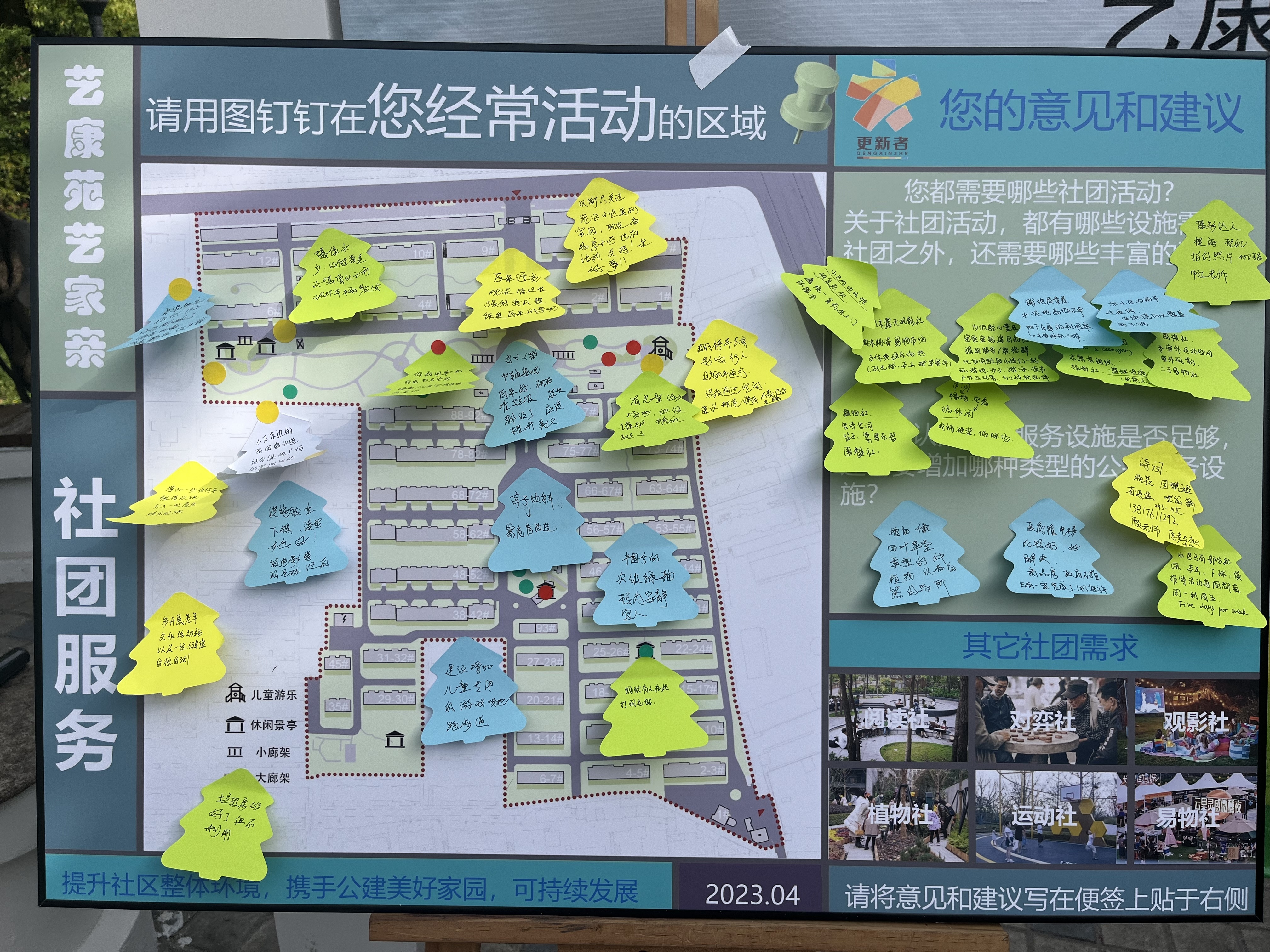 通过一系列互动图板、游戏,与社区居民进行参与式互动。同时,传达社区更新的信息和“社区参与不仅有意义而且是有趣的”理念,初步搭建一个多元主体协商议事的平台,以创新机制激发公众参与,推动社区治理和社区可持续发展,进一步助力“十五分钟生活圈”建设。