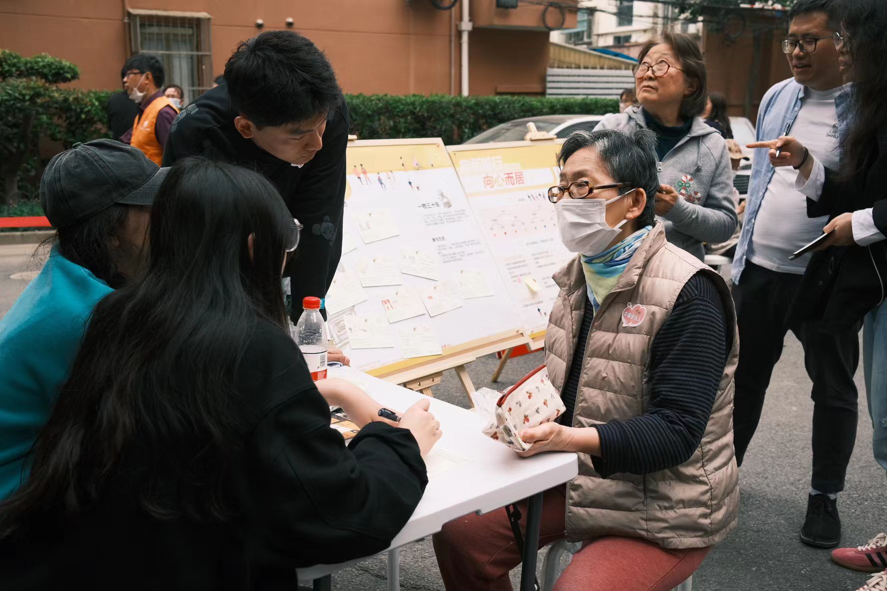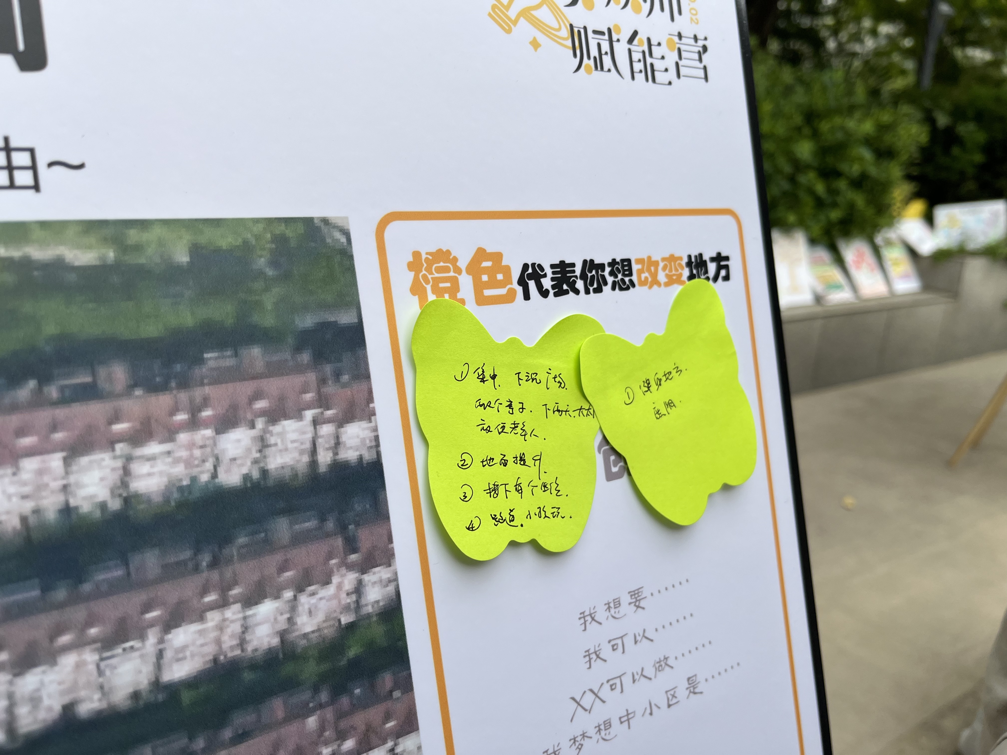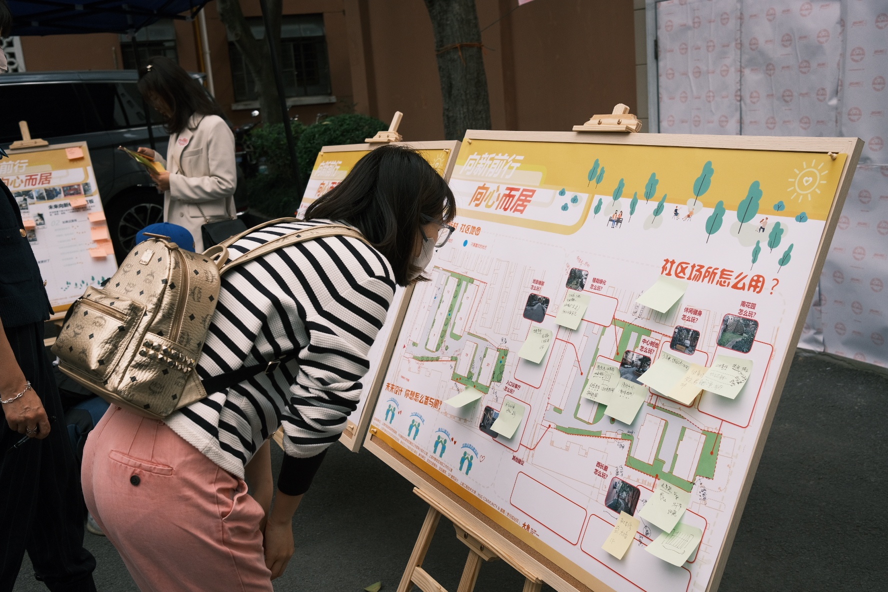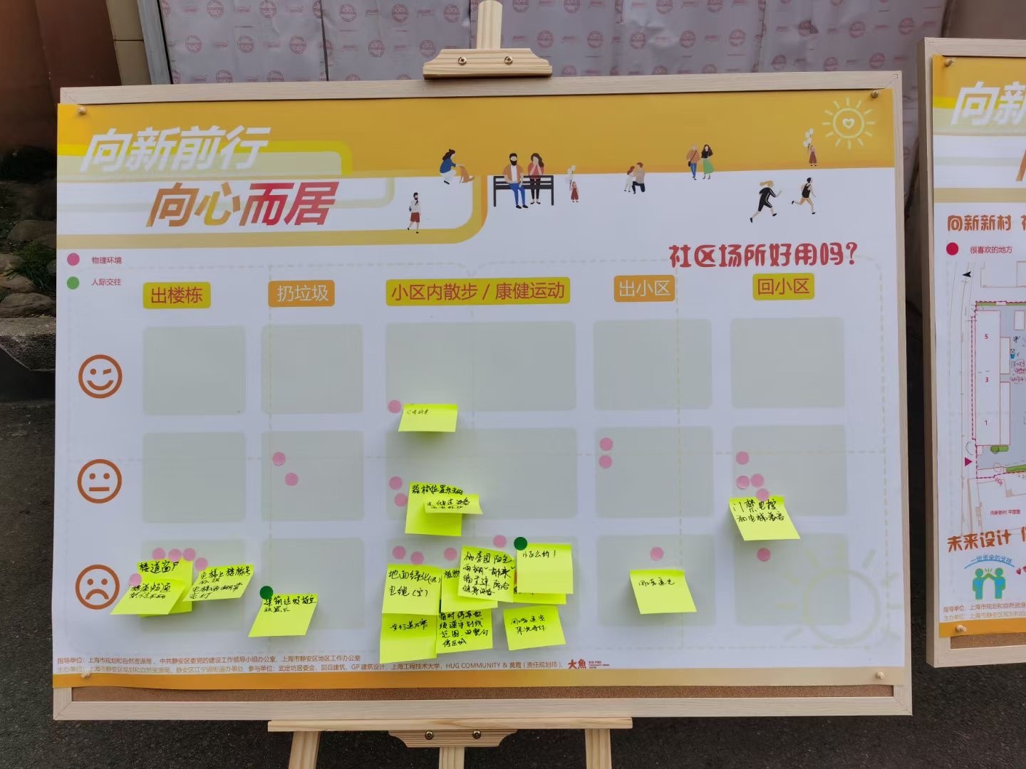 活动现场,居民针对“故事类”“空间类”“愿景类”不同主题,选择感兴趣的展板参与互动。