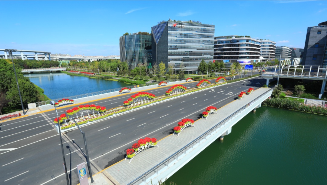 水质清澈、道路洁净、鲜花怒放、环境宜人……如今的新虹街道环境优美、商业繁华、总部集聚,坐拥虹桥综合交通枢纽、虹桥国际中央商务区核心区,是服务保障进博会的“主战场”,也承接着进博会溢出效应,是城市快速发展的缩影。