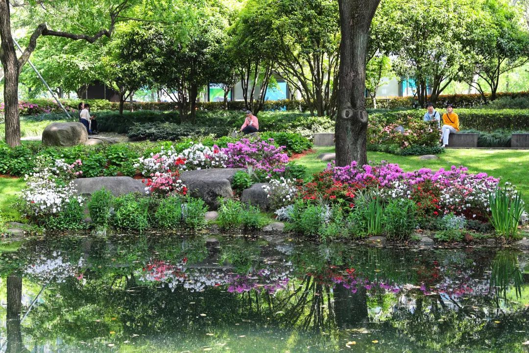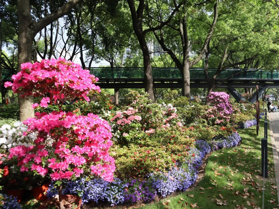 如今,4月已经过半,浪漫的樱花和浓郁的郁金香已经不再是主角。作为今年上海(国际)花展的分会场,各色杜鹃花占据了徐家汇公园造景的C位。