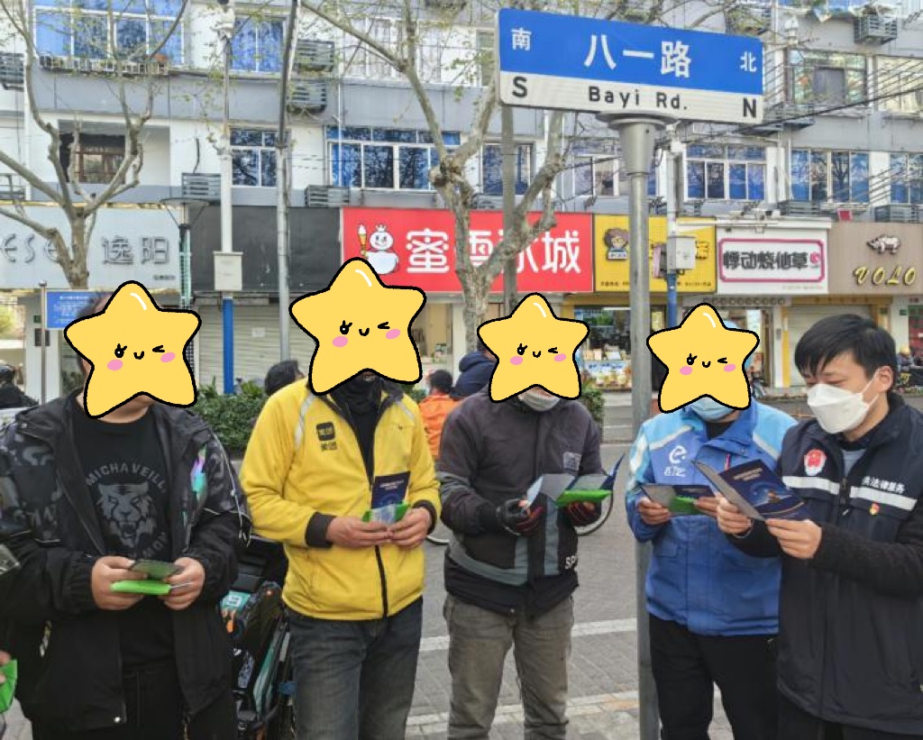 饭点是普通人的休息时间,也是外卖骑手最为集中之时,崇明法援工作人员专门在这一时间来到商业步行街,向正在候单的外卖骑手送上“法律援助+劳动”的法律法规“下午茶”,“小哥”们聚在一起听着工作人员的讲解、看着手上的宣传册,纷纷表示和劳动维权相关的普法让他们开了眼界、涨了知识。