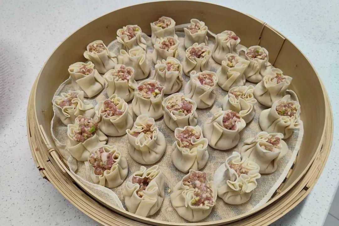 包烧麦是个熟能生巧的活儿。乍一看很难,但熟练上手后,半分钟就能包出一个漂亮的烧麦。