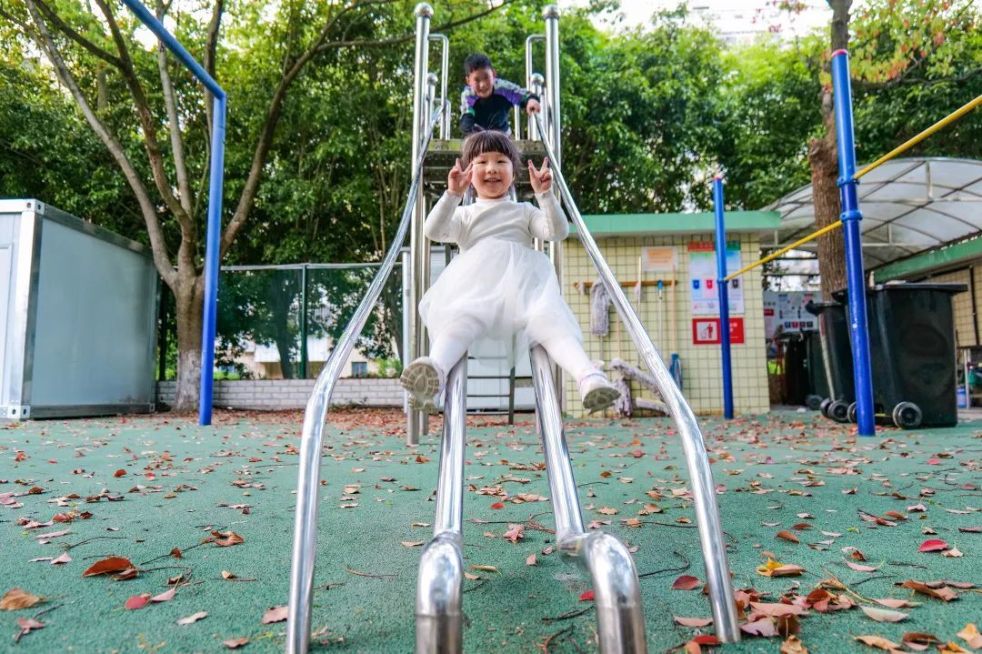 傍晚时分,绿树掩映下的江山小学体育场地更显清凉。由于江山小学位于江海花园小区内,不少家住江海花园的市民吃完晚饭后,便来到学校操场散步消食,孩子们也在这里快乐地丢沙包、玩滑梯、嬉笑打闹……