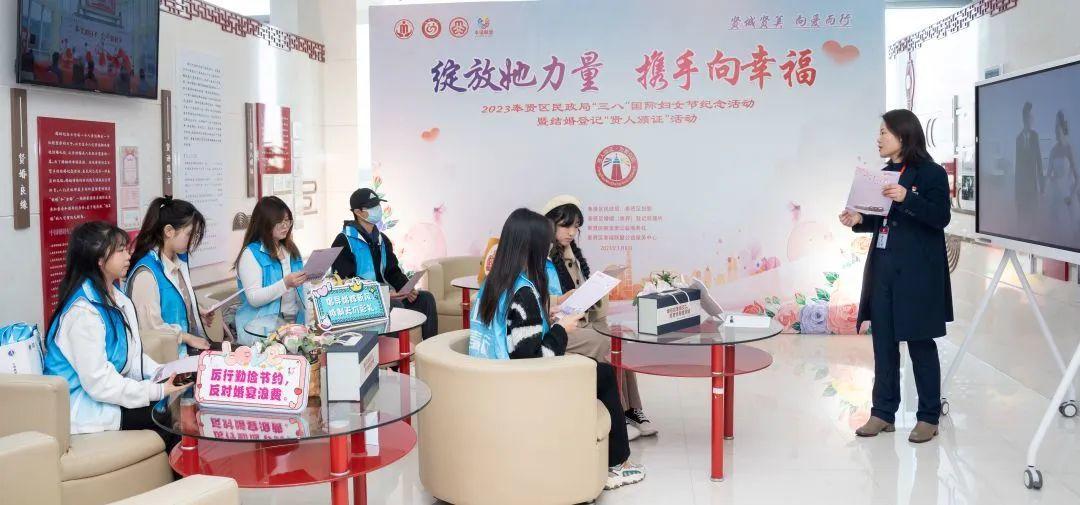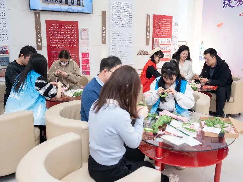 以婚姻登记处主阵地为抓手,强化新时代文明实践阵地建设,推动全区“幸福满驿”公益行动,让当代青年人投身于婚俗改革热潮中,让文明婚尚走进群众身边,提升群众获得感、幸福感。