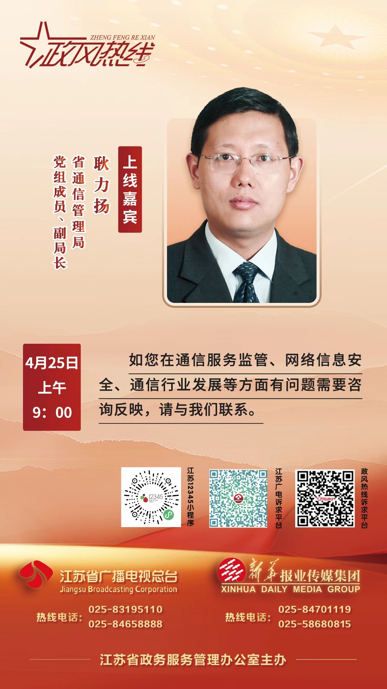 嘉宾:省通信管理局党组成员、副局长耿力扬