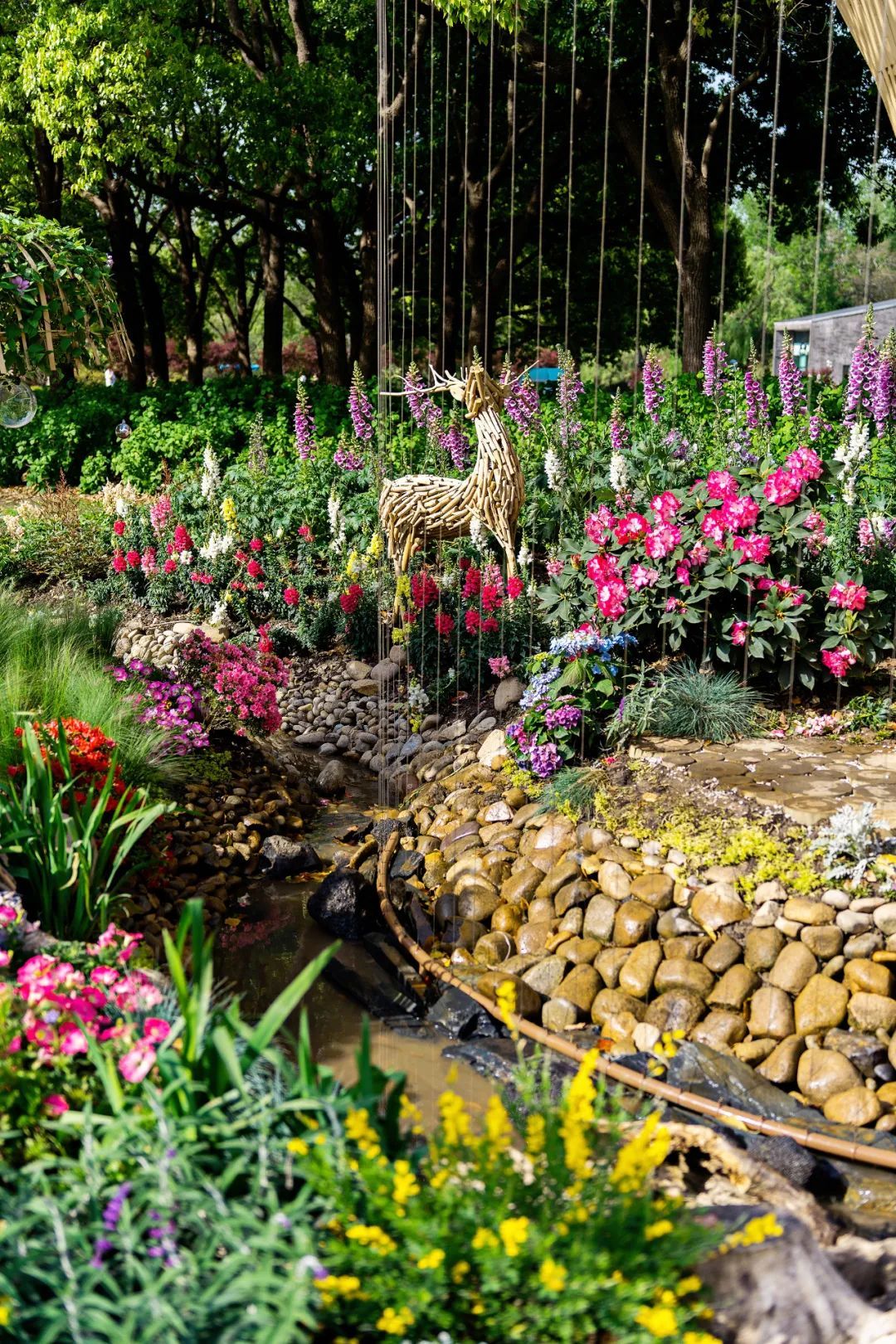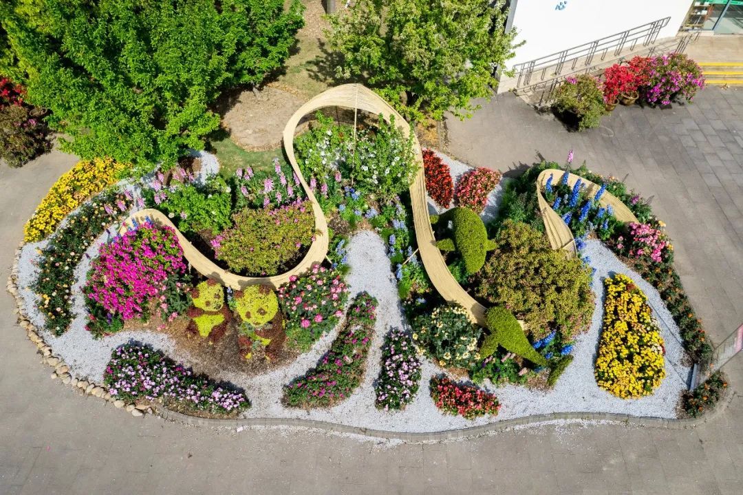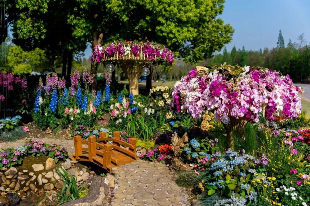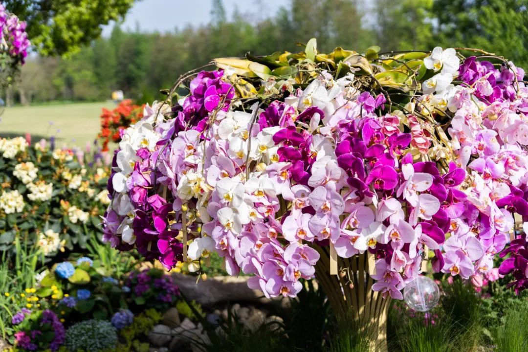 在中央主干道樱花草坪西南角的展点“森森不息”,利用混色蝴蝶兰、大花绣球、高杆金鱼草等形成高低错落的森境,搭配悬崖杜鹃组合成树冠,达到春风拂过千树繁花同开放的效果。 森林一端,高树林立,锦莺飞啄杜鹃花,涓涓泉水如明珠,在森林中形成蜿蜒溪流,溪流两岸枯木成穴,动物驻足,小桥林立,一路繁花。展点寓意万物生长,繁衍不息,美好祝愿如期而至。