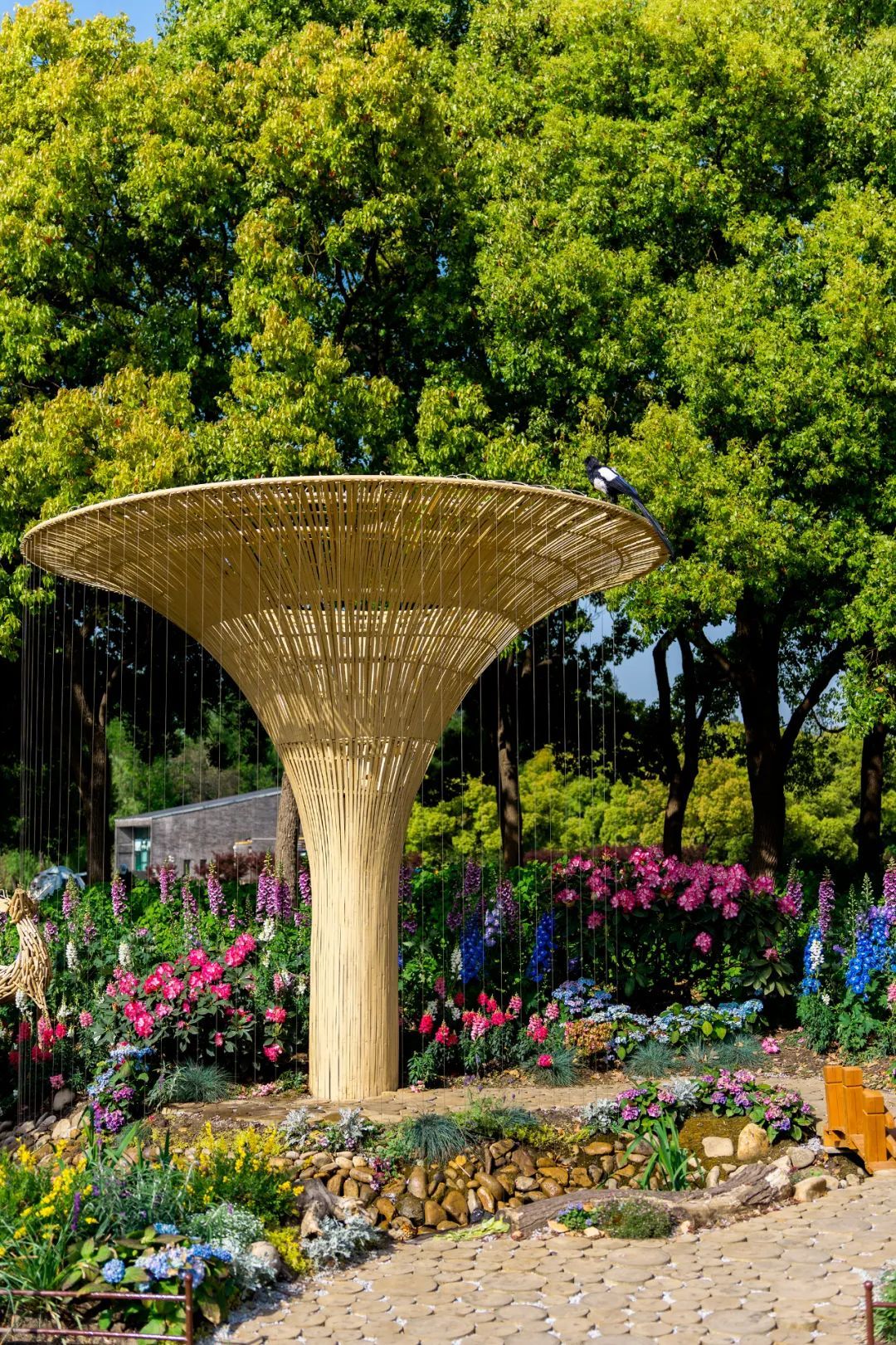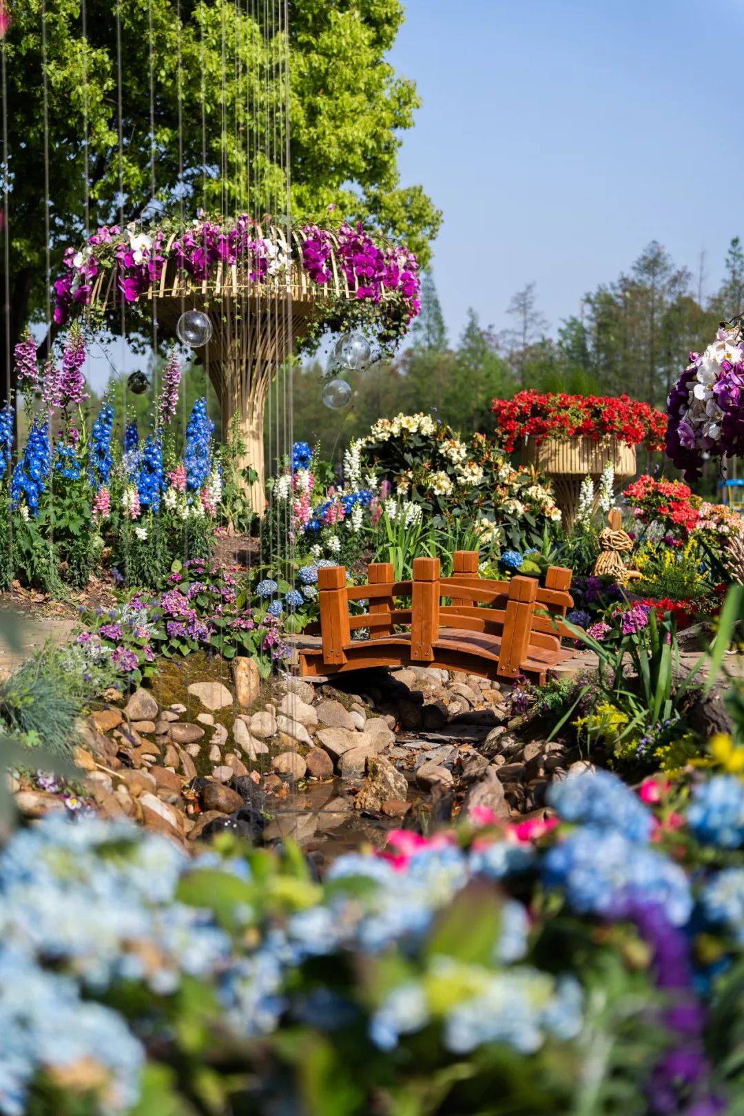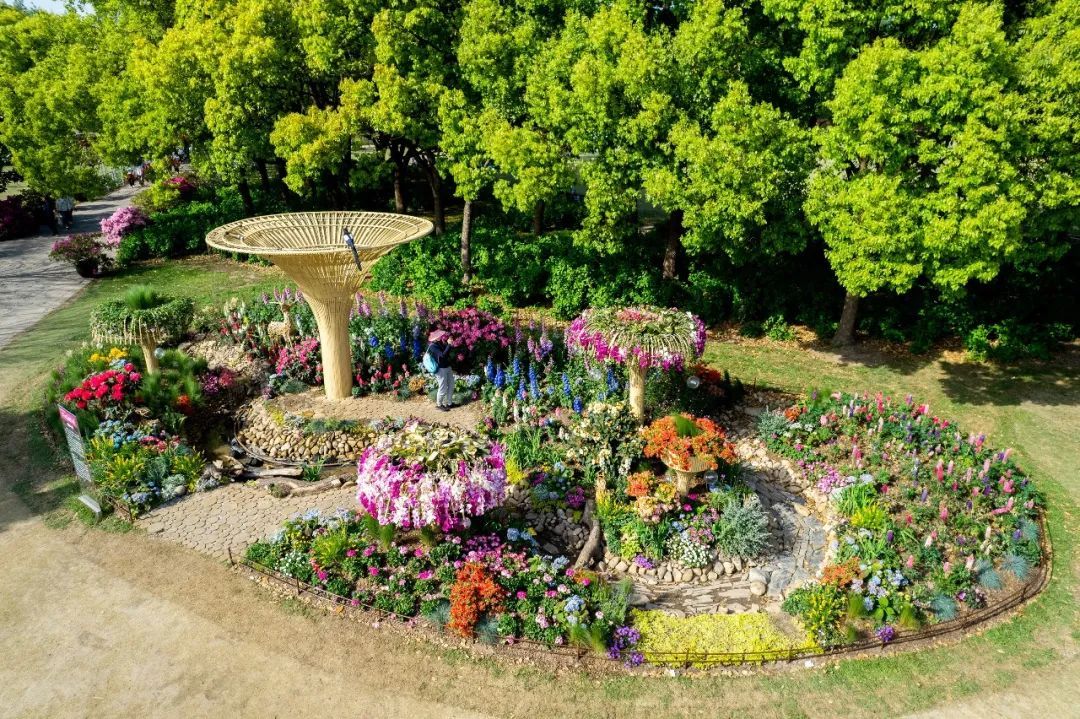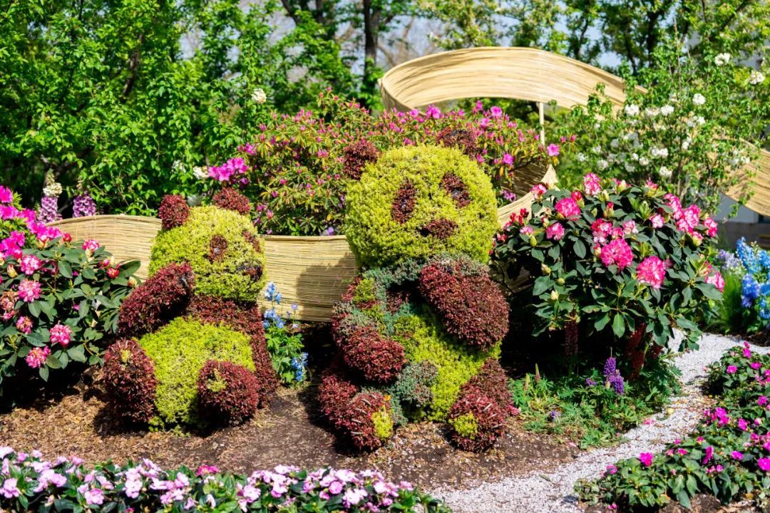 在中央主干道樱花草坪西南角的展点“森森不息”,利用混色蝴蝶兰、大花绣球、高杆金鱼草等形成高低错落的森境,搭配悬崖杜鹃组合成树冠,达到春风拂过千树繁花同开放的效果。 森林一端,高树林立,锦莺飞啄杜鹃花,涓涓泉水如明珠,在森林中形成蜿蜒溪流,溪流两岸枯木成穴,动物驻足,小桥林立,一路繁花。展点寓意万物生长,繁衍不息,美好祝愿如期而至。