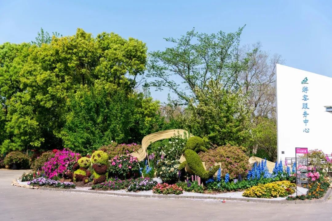 结合滨江森林公园地处长江尽头的地理优势,位于游客服务中心前广场的展点“锦绣千里”,以蜿蜒藤编寓意奔腾长江,两岸“山花”浪漫、杜鹃花迎风摇曳。岸上,世界生物多样性保护的旗舰物种“大熊猫”愉快的嬉戏玩闹;江中,体现长江生态环境持续向好的代表性物种“江豚”自由的奔腾跳跃。锦绣千里,既是对长江两岸生态环境的美好祝愿,也 是对长江生态环境保护日渐成效的展现。千里铺锦绣,山河归自然,愿我们一起守护江中的 “微笑天使”——江豚,一起见证祖国的大好山河。