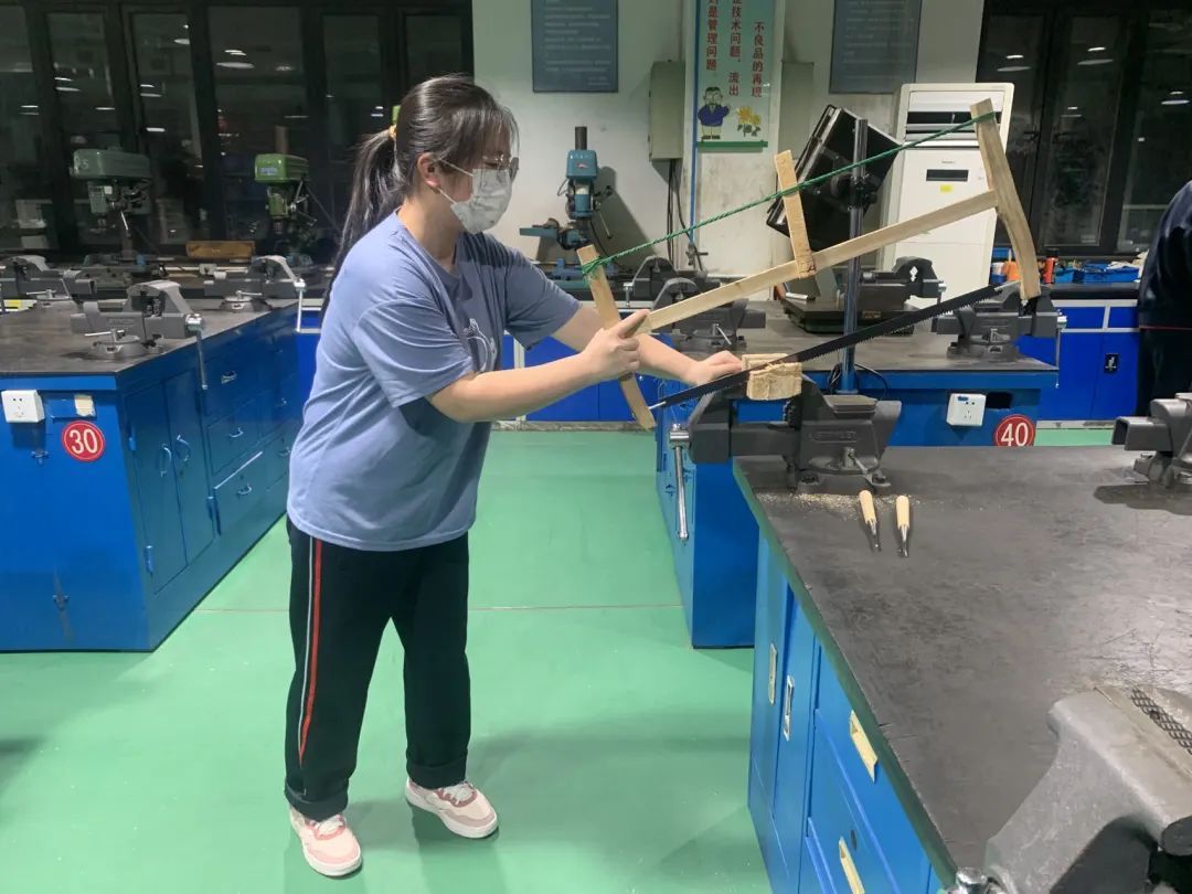 木屑飞溅,锤声不断,同学们干得热火朝天,认真严谨地对待这项传统非物质文化遗产的制作过程。非遗传承在长桥街道生机勃勃,传统手艺在操作台上得到传承和弘扬。