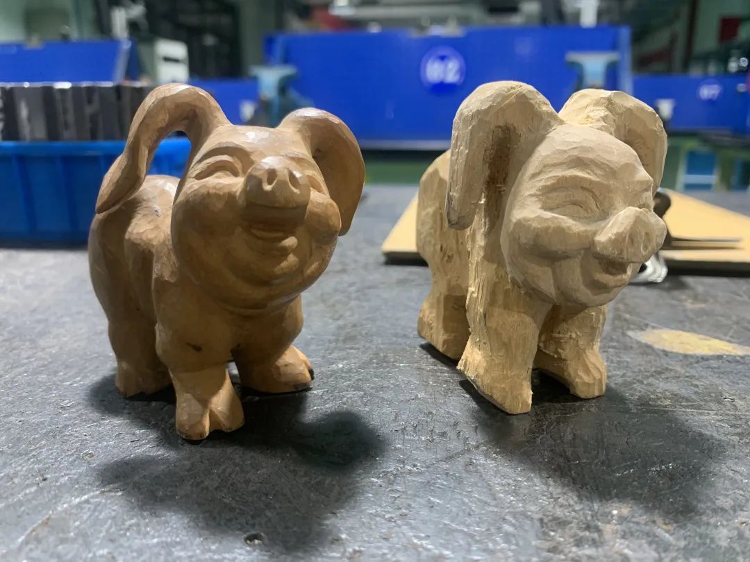 黄杨木雕制作工艺精细繁复,需经过构思草图、塑造泥稿、选料取材、制作粗胚、雕刻实胚、精心修细、擦砂磨光、细刻发纹、打蜡上光、安装配脚等10余道工序。在课堂上,陈华明用橡木演示了如何把正方体木块制作成粗胚。