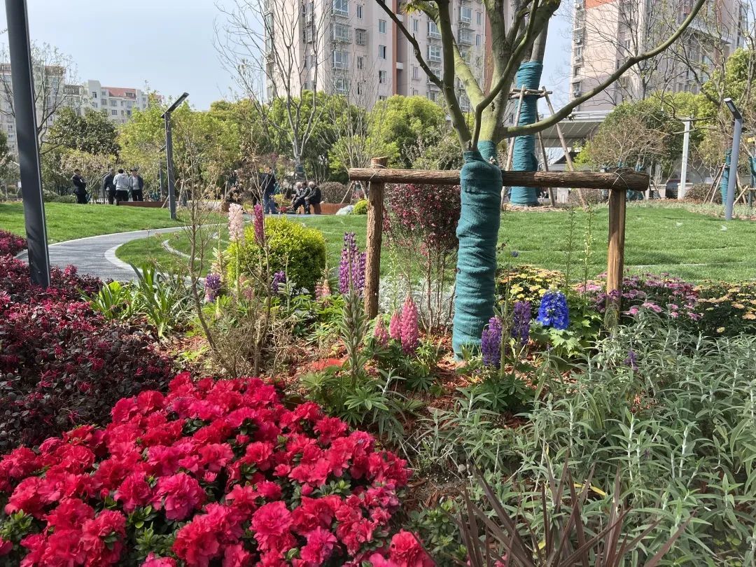这样精致的街口袋公园正越来越多出现在城市街角、社区周边。除了年轮公园,文来小学门口(兴虹路-申滨路)绿地改造成了候花园,沪青平北侧(吴宝路口-北横泾)绿地的启航公园,3个公园全部完工并投入使用。