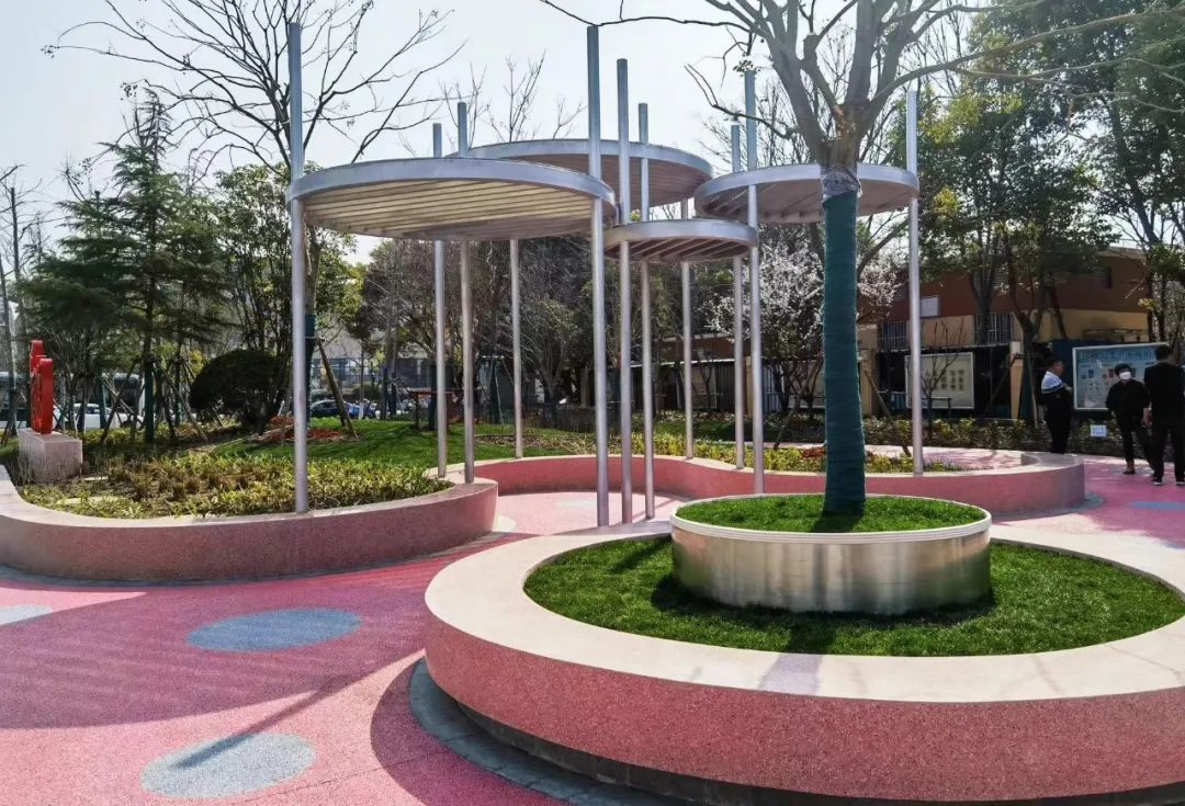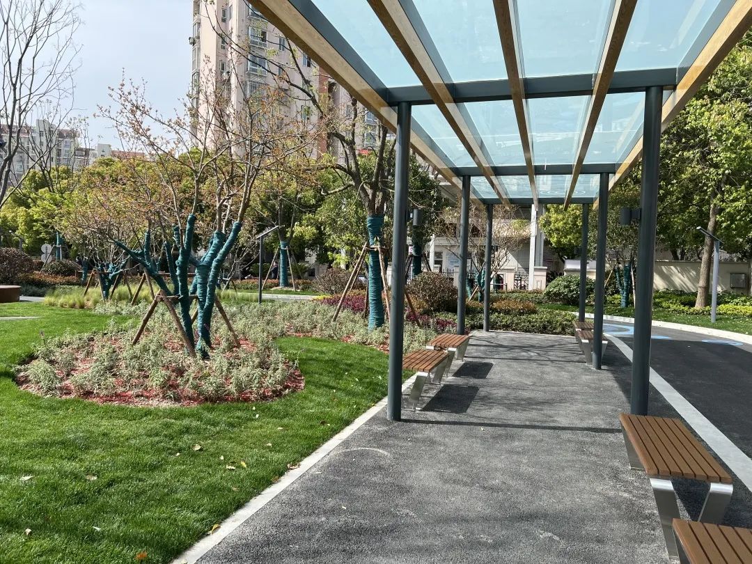 新虹通过增加便民设施,如步道、座椅、凉棚等,开放和改造原有的小块绿地,为老百姓提供更多公共活动场所。同时提升绿地景观,更新花草树木品种,增加一些彩画等,让小小的公园变得更加美观,让城市更有温度。