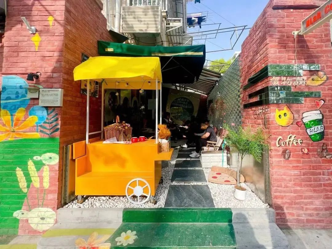 在虹口区欧阳路679弄2号侧门处,有个身处弄堂口门面不大却色彩缤纷的咖啡小站,这个稍不留神就很容易擦肩而过的咖啡馆,名叫欧邑咖啡小站,英文名Hlab Coffee。