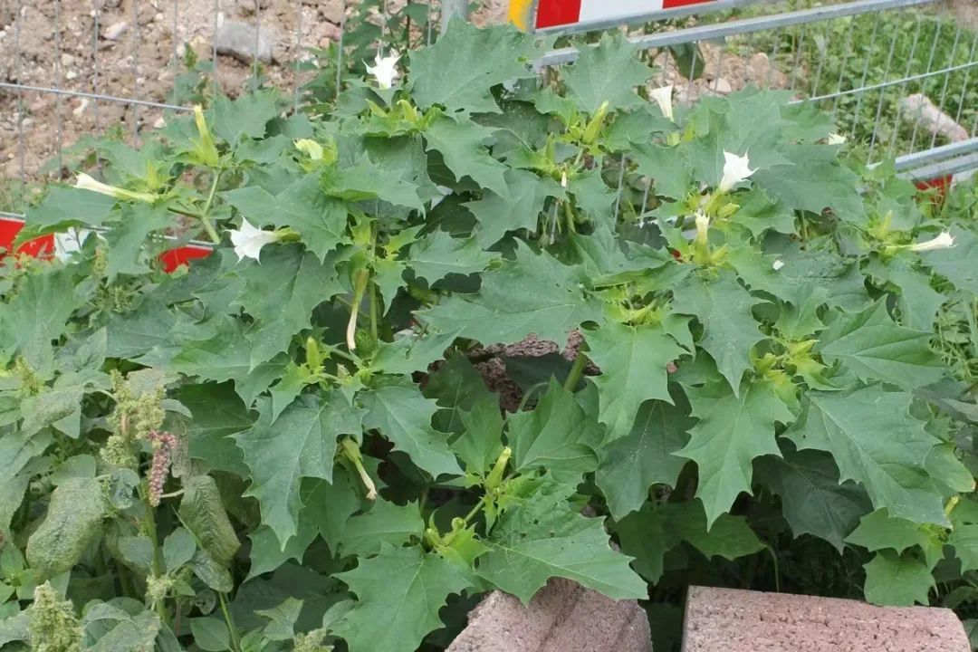 曼陀罗叶和常见的藜外形相似,但内在属实“魔鬼”。曼陀罗全株均有毒,种子毒性最大。花可用于麻醉,被称为 " 东方麻醉剂 "。食用和外敷曼陀罗叶均能引起全身性中毒,一般在食用30分钟后出现症状,多为急性突然发病。