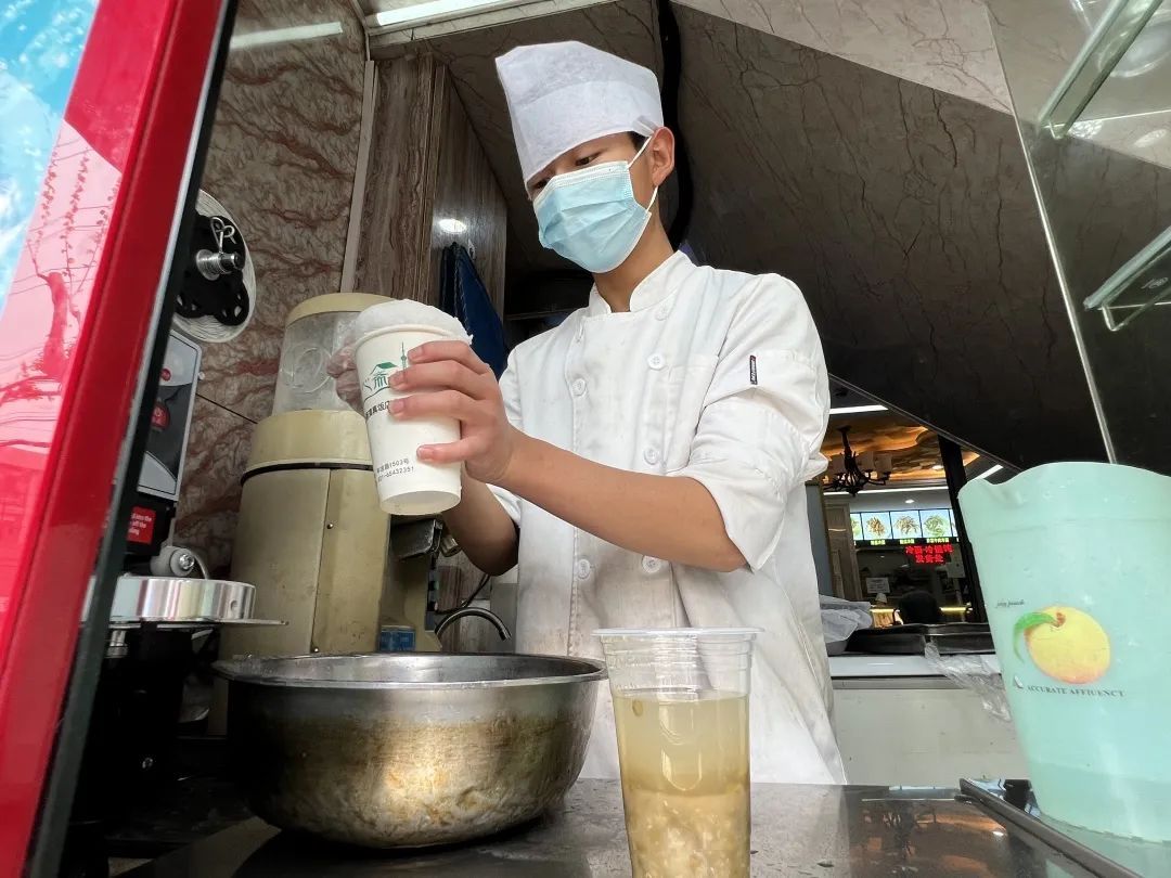 “天气最热的时候,刨冰我们一天能卖一千杯,现在能卖三、四百杯;冷面,最多的时候一天能卖四百斤,现在能卖到一百多斤,达到三分之一。从销量上来看,基本达到了我们提早上市的预期效果。”上海一心斋清真饭店有限公司负责人马旺林表示。