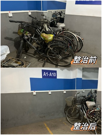 整治过程中,大家将一辆辆“僵尸”车和废弃杂物整理出来,对这些逾期还未按要求清理的堆物进行分类妥善处置,例如对一些暂时无人认领、尚能使用的电动车、自行车和建筑装修材料、破旧家具等,先统一集中保管一段时间作为“缓冲期”。同时,把正常使用的非机动车排列整齐。通过大家的联合大扫除,整个清理过程持续了四个小时,终于将地下车库内的废旧闲置车辆清理完毕。