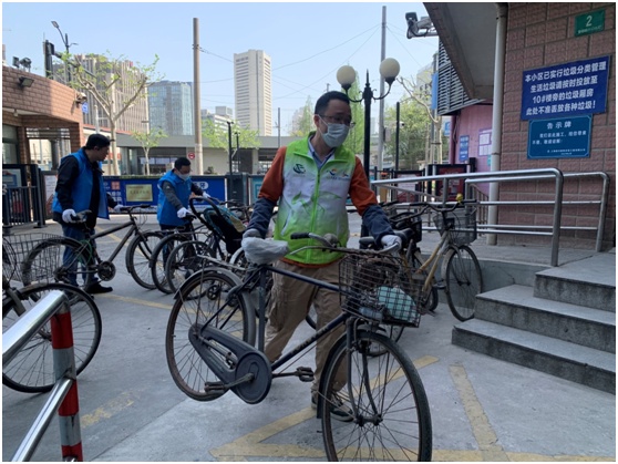 4月13日上午,普陀四村第一居民区汽车公寓内有一群忙碌的身影穿梭在居民楼和车库内,他们的身上沾满了灰尘,额角渗出细密的汗水,即便如此,也没有停下手中搬运的工作来歇息片刻。这是普陀四村第一居民区党总支、居委会联合上汽物业、汽车公寓业委会的党团员志愿者和汽车公寓小区居民志愿者,对汽车公寓2号和6号地下非机动车库开展整治活动时的场景。
