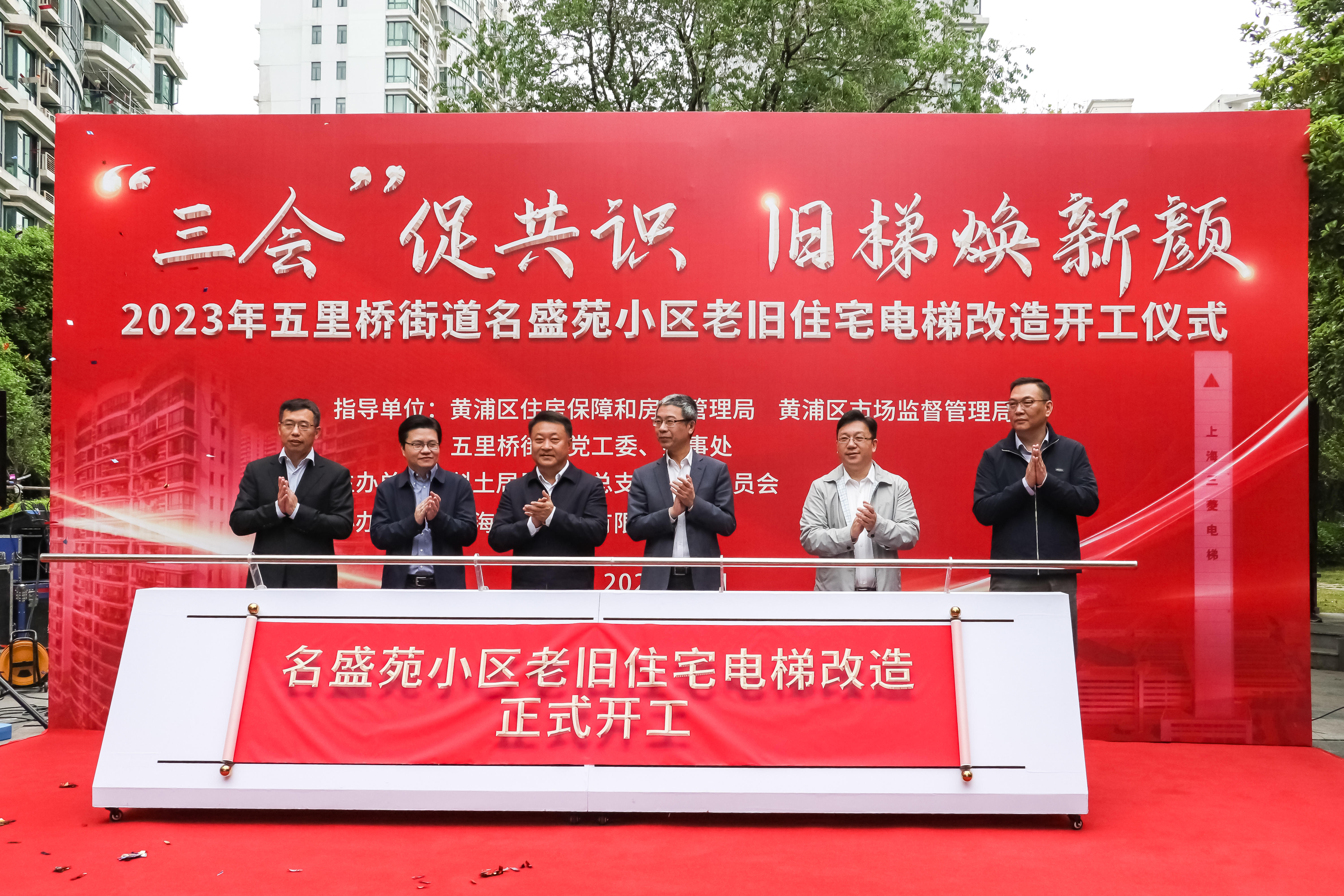 4月19日一早,长期“带病”服役的五里桥街道名盛苑小区14栋楼的24台电梯,正式迎来更新改造。区委副书记李忠兴,区委常委、常务副区长洪继梁与区房管局、区市场监管局、五里桥街道、 三菱电梯公司等领导在开工仪式上,一起推动改造工程的启动杆。