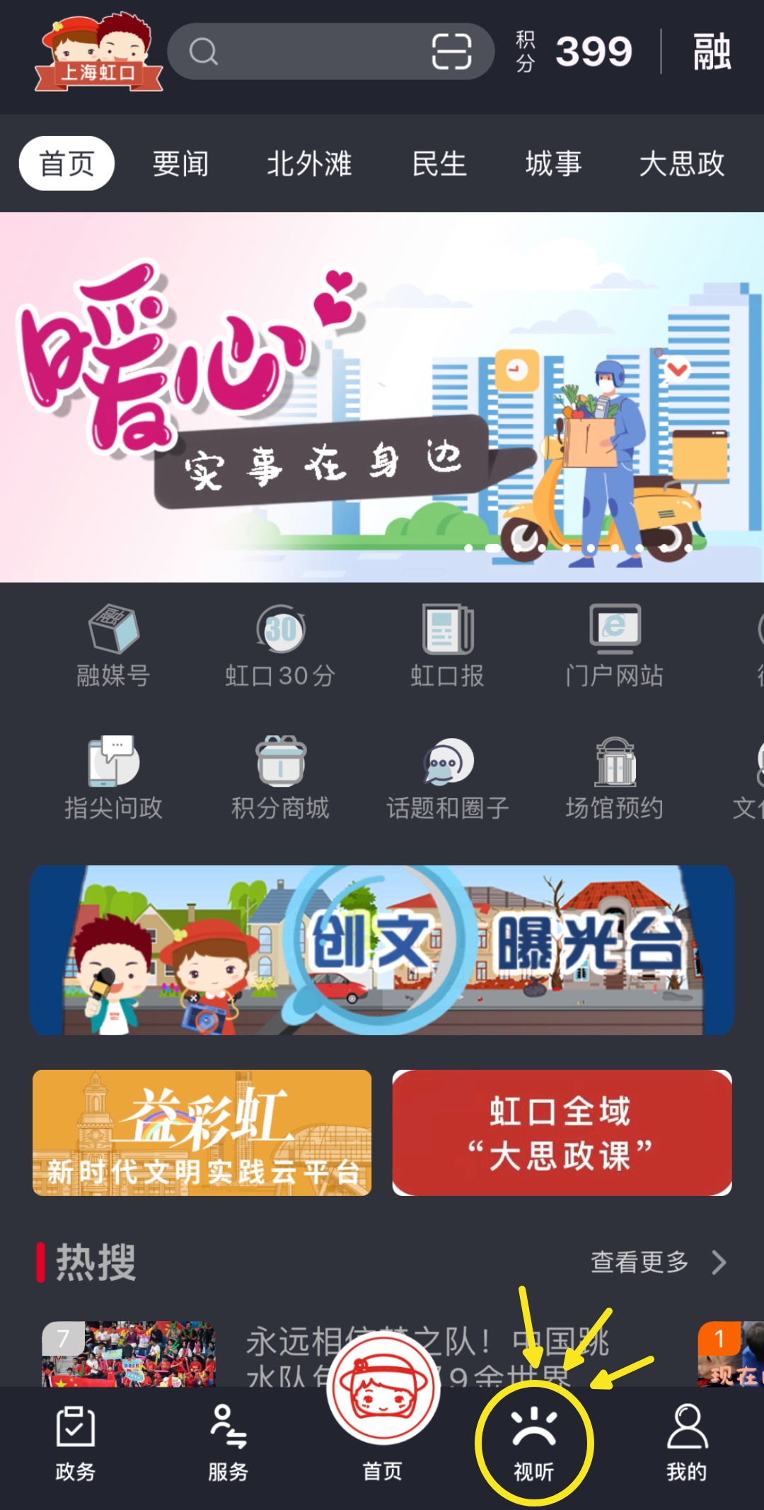②点击“视听”按钮
