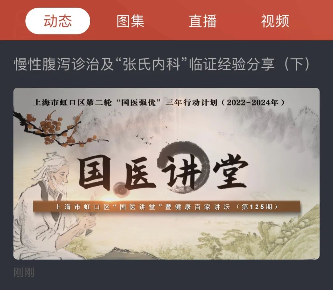 ③点击“国医讲堂:《慢性腹泻诊治及“张氏内科”临证经验分享(下)》观看