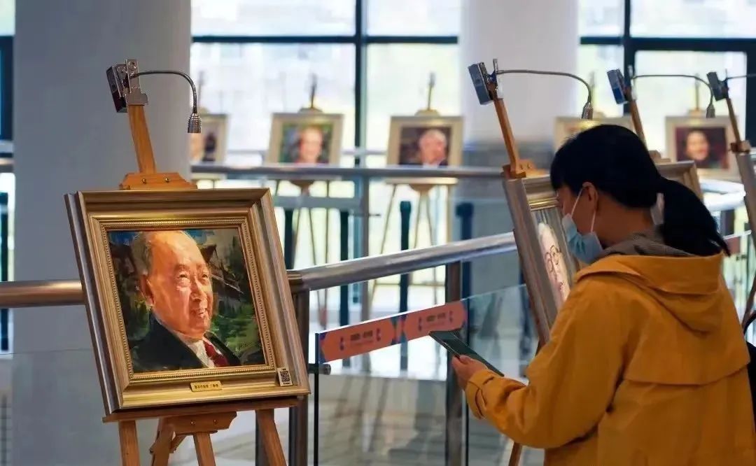 此次展览共展出43位上海音乐家的肖像画,每幅画配有二维码,扫码便能了解他们的生平介绍和代表作。