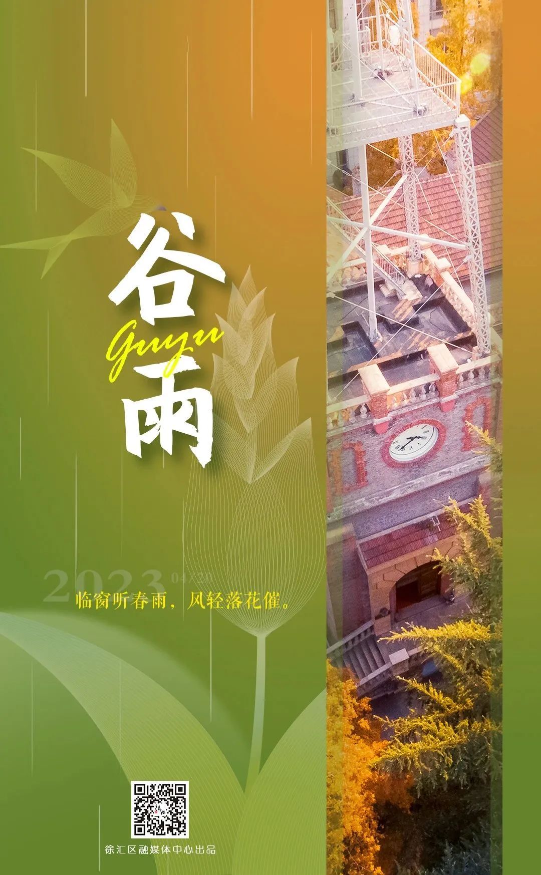 今天(4月20日),是二十四节气中的第六个节气——谷雨。谷雨意为“雨生百谷”,“沾衣欲湿杏花雨,吹面不寒杨柳风”,在春风化雨中迎来了这个诗意的时节。谷雨至、春已远,谷雨是春天的最后一个节气,亦是春天最后的回眸一笑。
