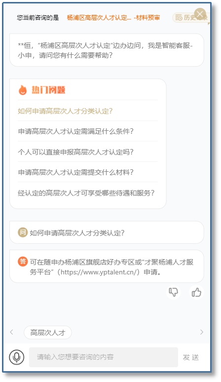 通过建设高层次人才办事、服务、政策、咨询、投诉等一站式综合办事服务体系,打造区域高层次人才专属服务平台,为高层次人才提供多维度、广覆盖、差别化的配套服务支持,同步助力杨浦区全面提升政务服务便捷化水平。