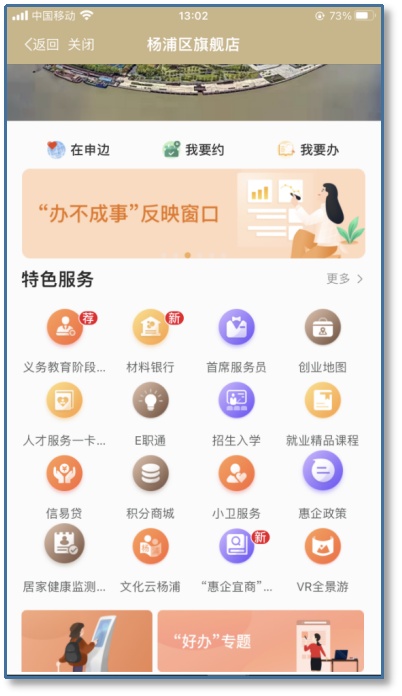 1.登入“随申办”APP,进入杨浦区旗舰店首页,打开“菁英专区”;
