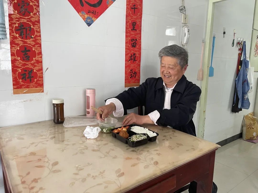 “沈伯伯,你的午餐到啦!”中午11点,居住在重固镇福泉社区的沈伯伯从配餐小哥的手中拿到了热气腾腾的饭菜。沈伯伯今年已经83岁,一个人居住,不仅在外工作的子女不放心,居委会的工作人员也时常挂念这位独居老人。所以,此次为老助餐服务试运行一经推出,居委会便上门询问了社区内每一位就餐不便的老人,让他们在家里就能享用到便利实惠的午餐。沈伯伯表示,做饭的时间可以省出来和老朋友们逛公园、嘎讪胡,到饭点了就各自回家吃饭,非常方便。“我们老人都觉得非常满意,每天都是不同的菜,咸淡刚好,我饭量比较大,跟他们说了一次之后,每次都特地给我多盛了,特别贴心。”沈伯伯说。
