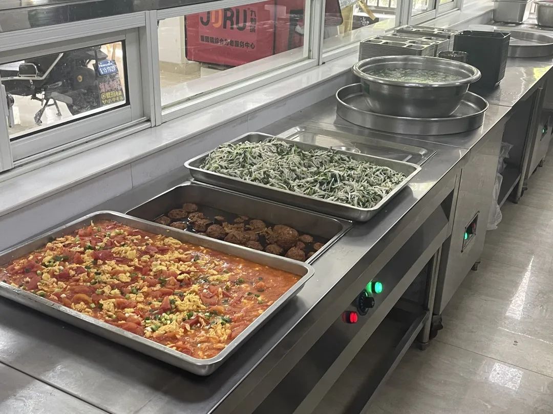 午餐都是标准的一大荤、一小荤、一素菜和一份汤,每餐18元,每天菜色不同,均衡营养,特意避开鱼刺、硬骨和难以消化的菜品。看到老人们都安心地吃上了午餐,为老助餐志愿者们也十分开心。