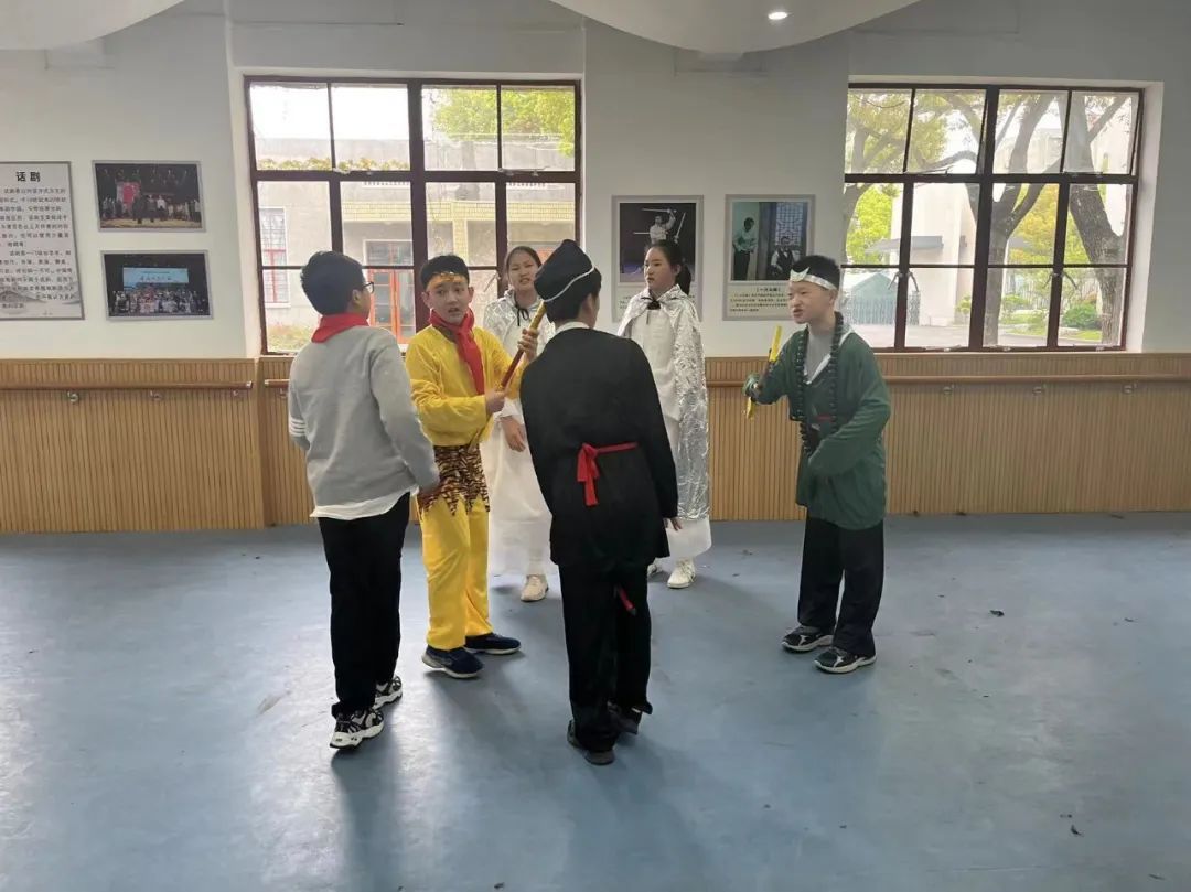 而在行知实验中学,学生们通过创作戏剧、角色扮演等方式更好地理解和分析文本作品,主动与“文本”“作者”进行沟通,理解文本背景、主题。每一次走台、定位、亮相,一招一式,都是对人物形象的体验,调动全部感官理解文学作品,进行体验式、立体化阅读。