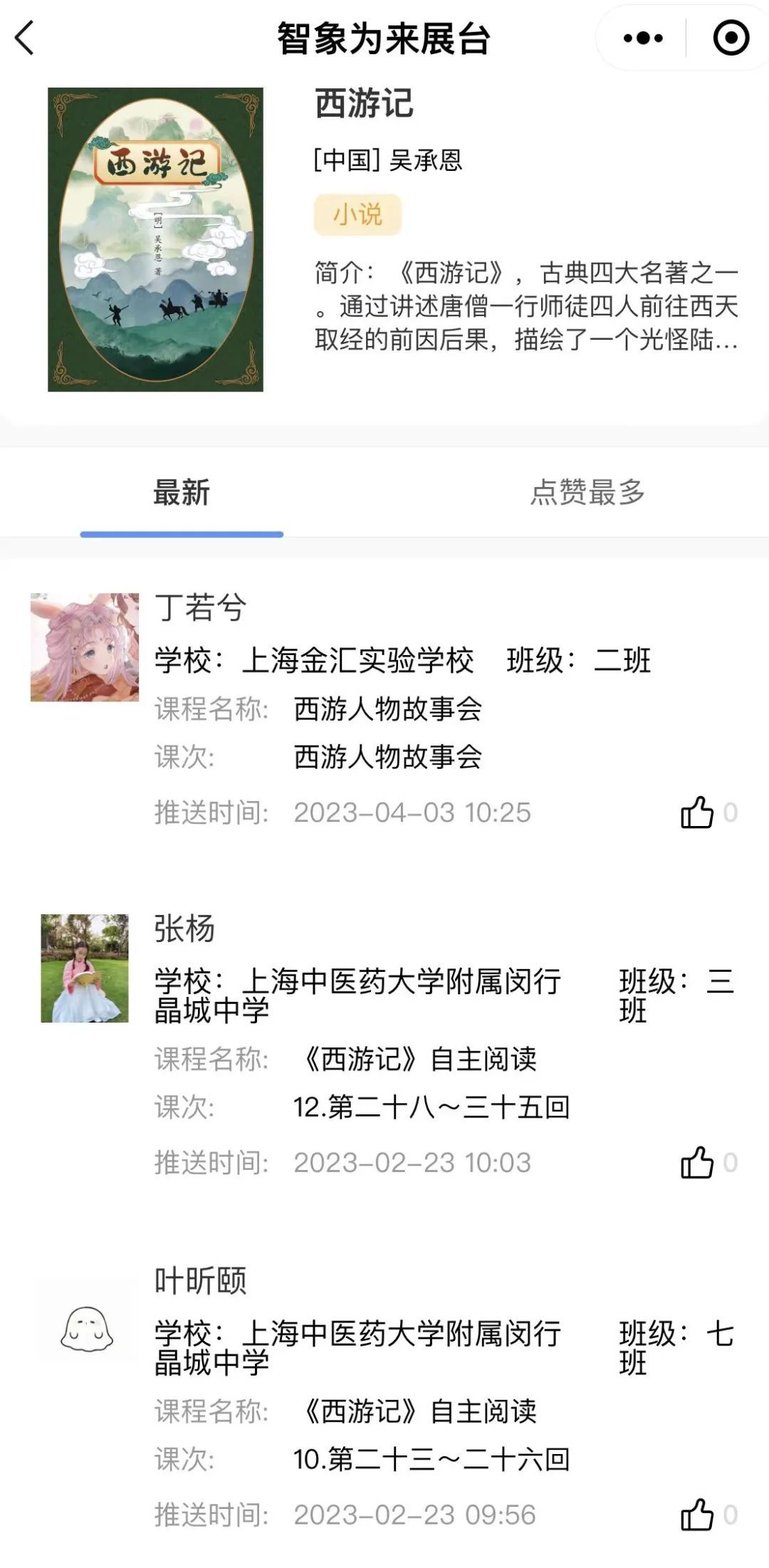 在刚刚过去的寒假中,上海市行知实验中学、上海中医药大学附属闵行晶城中学、金汇实验学校、闵行区北桥中学、华东师范大学第二附属中学附属初级中学、南洋模范初级中学、新泾中学、天山第二中学、西延安中学等九所学校的六七年级学生通过“智象为来”平台规划阅读计划,有挑战、有动力地完成阅读。