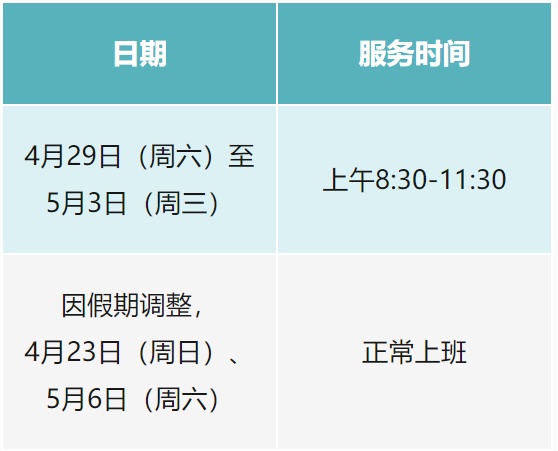 根据《国务院办公厅关于2023年部分节假日安排的通知》精神,现将本中心2023年劳动节期间窗口对外服务时间安排如下: