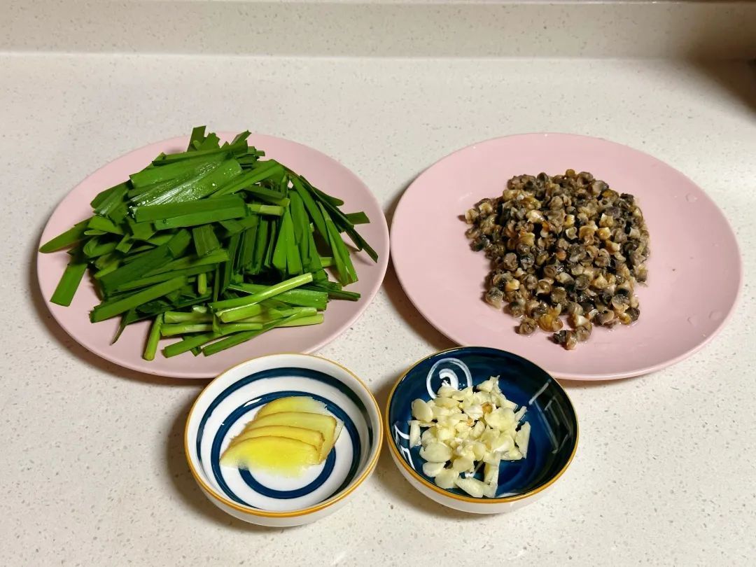 今天为大家介绍韭菜炒螺肉的做法: