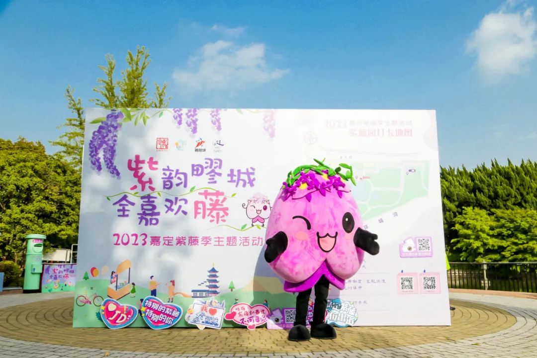 当“混知”遇到嘉定紫藤吉祥物“藤宝”,让我们看看两个不同画风的IP如何打破次元壁在紫藤园中碰撞出火花!