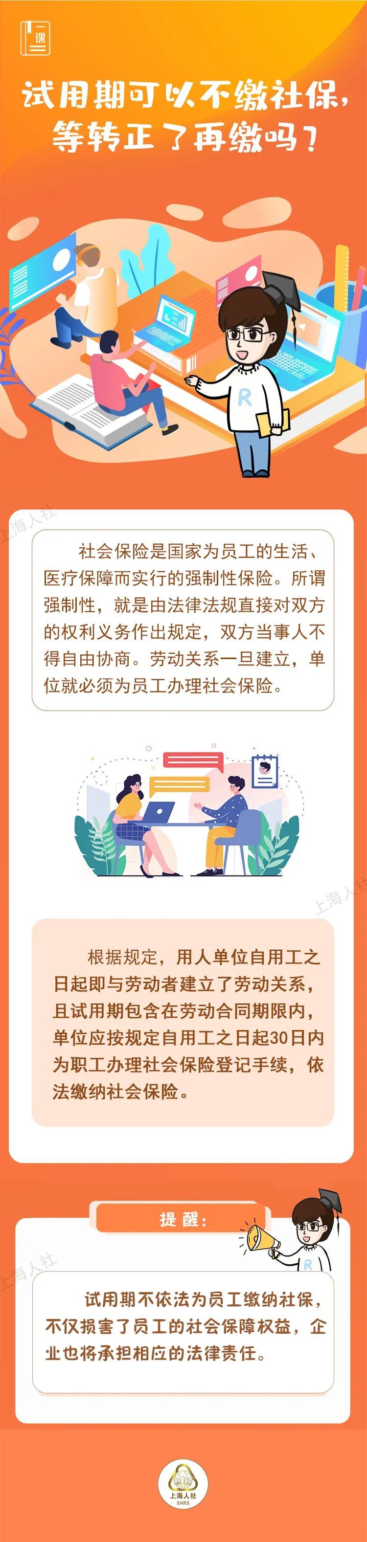 晨晨本月初入职一家文化传播公司,双方签订了3年的劳动合同,试用期约定为3个月。公司HR告诉晨晨,试用期顾名思义试用为主,等试用期结束,转正了,公司再为她缴纳社保。晨晨想,反正也不差这3个月,也就没有多言。公司的做法到底对不对呢?
