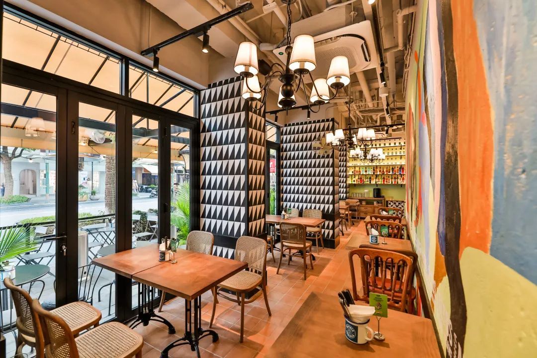 户外银黑色调的桌椅,室内明亮的色彩与斑驳的艺术墙绘,碰撞出独特的异域风情,自由随性,复古美式的店铺风格,周末和朋友一起拍照打卡,出片率绝对高。
