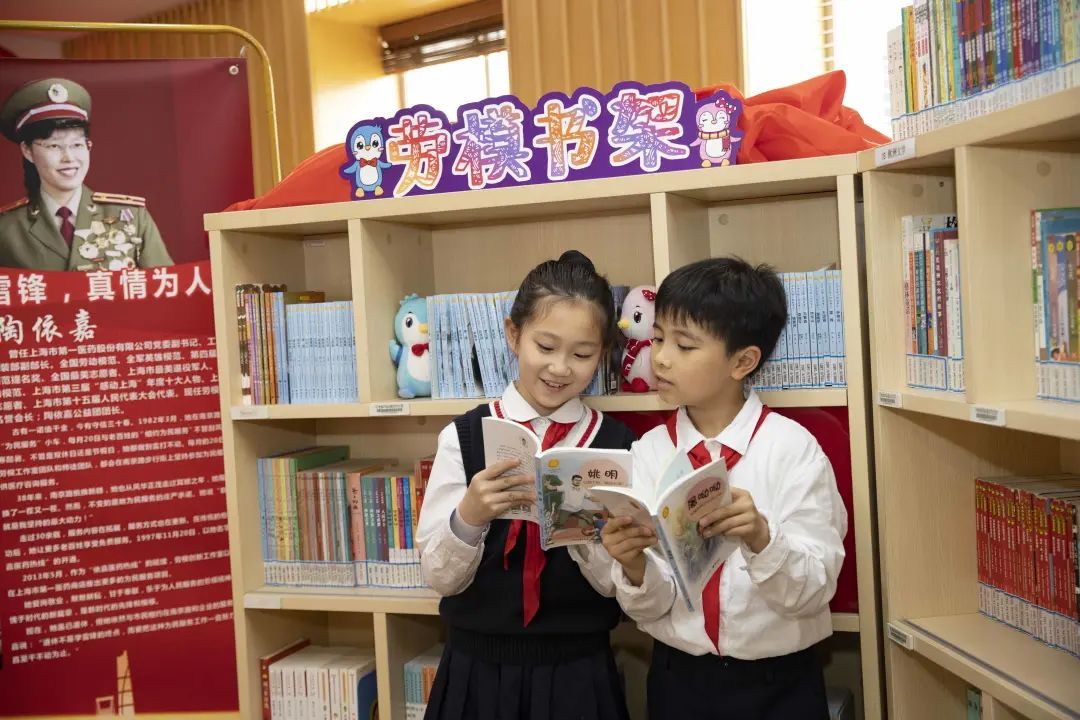 在“世界读书日”即将来临之际,一个摆满了劳动教育图书的“劳模书架”,在黄浦区蓬莱路第二小学的图书馆“闪亮登场”,而书架上的书籍,来源于全国劳动模范、全军英雄模范、第四届全国道德模范提名奖、全国学雷锋先进个人、全国最美志愿者陶依嘉的捐赠。