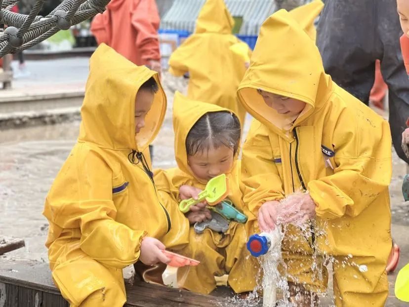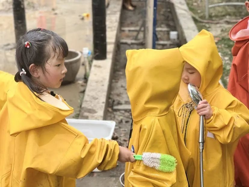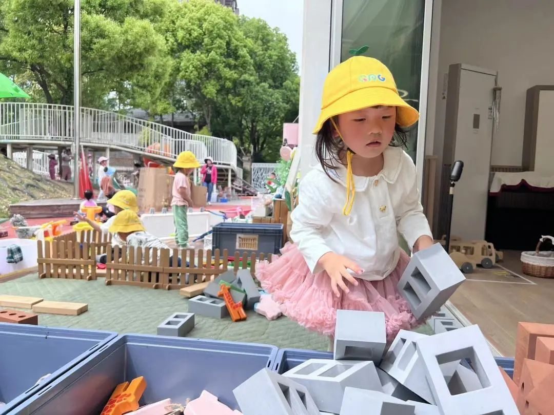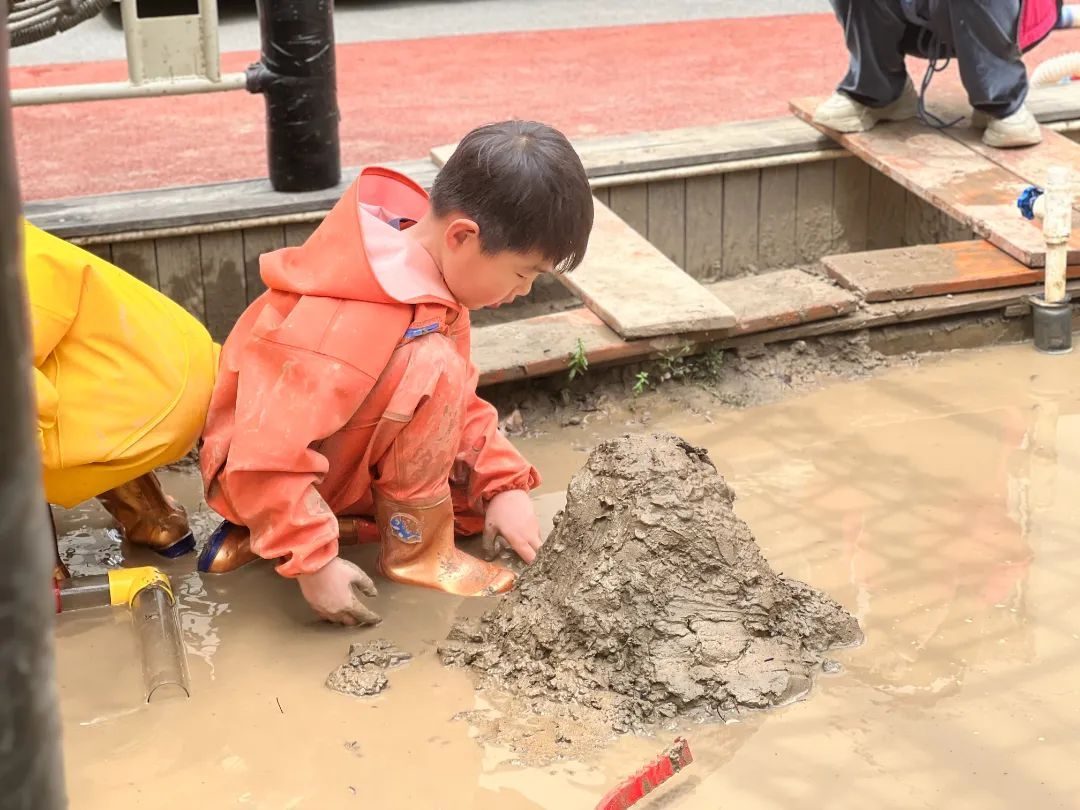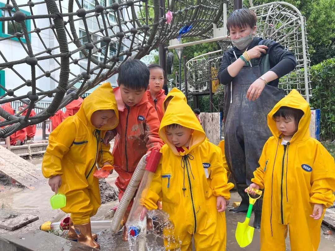 看似安吉游戏是让都市里的孩子模仿在山林和田野中放飞天性,开放式玩耍,但玩耍背后也暗藏着教育者的悉心钻研与默默观察。“我们惊喜地看到,托班孩子们用滑草工具从坡上往下滑,感受速度感;踩泥坑、挖水渠、玩泥坑滑梯、用泥塑作品,处处尝试、挑战。中大班的孩子们则会提前为弟弟妹妹们铺木板,会主动帮助穿脱衣物。很多有爱的举动自然发生,不需要引导设计。”谈到安吉游戏,园长黄豪芳眼中闪烁着光芒,“当把真游戏还给孩子,当把空间还权儿童,孩子们的表情是愉悦的、专注的,其交往是友善的,这才是真正乐于看到的高质量成长。”
