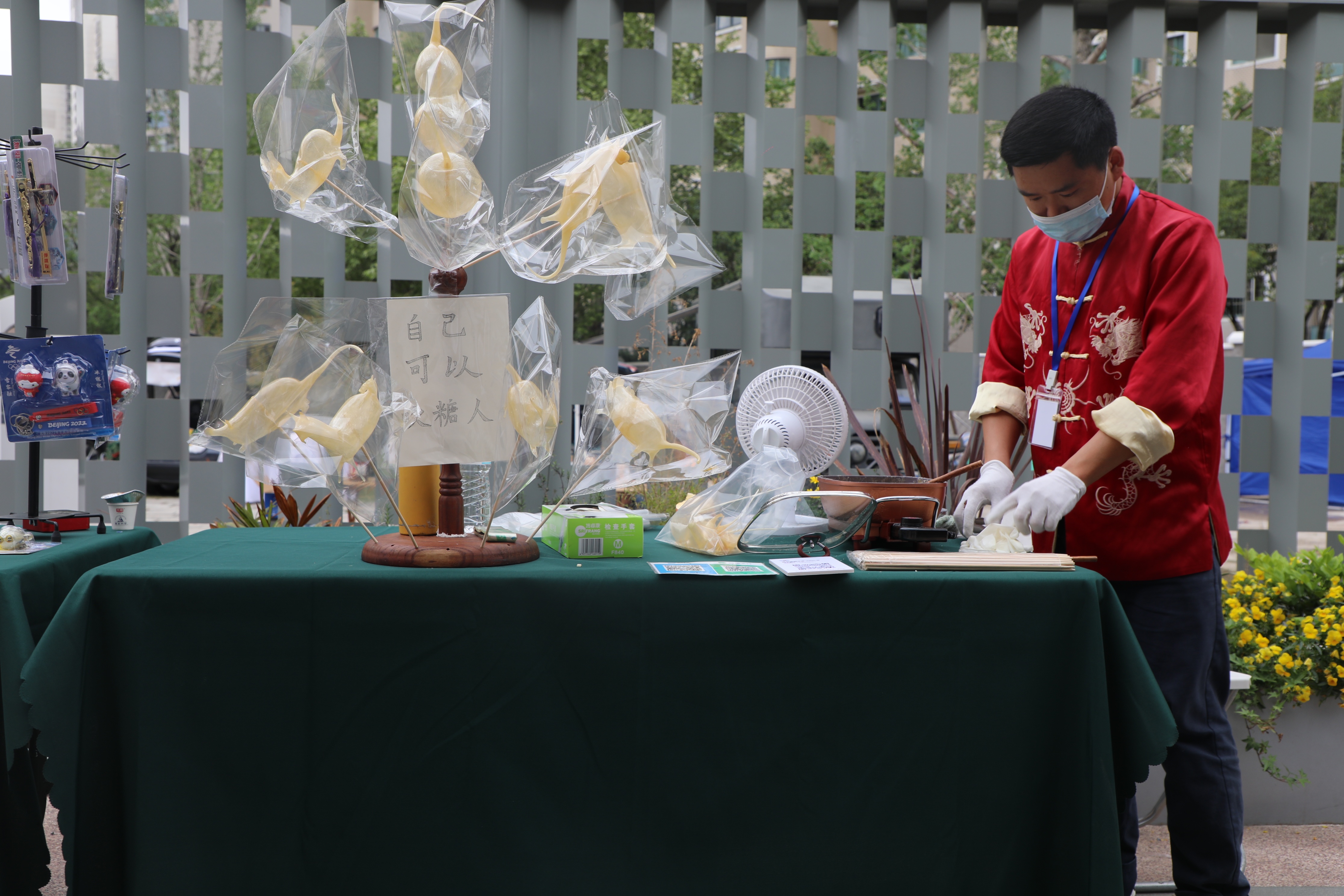 来到文创非遗手作区,非遗技艺摊位依次排开,供市民观赏。看的同时,市民还可以参与制作。记者就现场体验了吹糖人。记者缓缓吹气,技师快速塑形,不一会一只可爱的动物造型就诞生了。