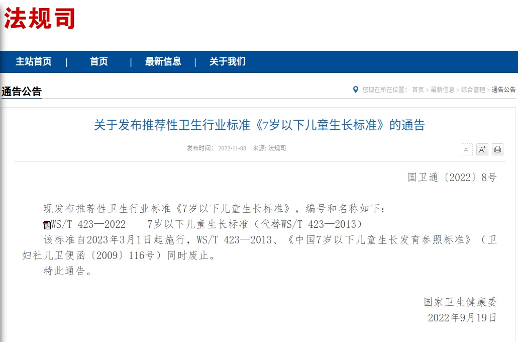 从3月1日起,我国已施行最新版《7岁以下儿童生长标准》,其中明确规定了不同年龄儿童生长发育的各项指标。与前一版本相比,大部分年龄段的儿童身高“标准值”有所增长。以6岁女孩为例,此前标准的身高中位数是116.6厘米,新标准达到117.5厘米,增长了0.9厘米;6岁男孩此前标准的身高中位数是117.7厘米,新标准达到118.8厘米,增长了1.1厘米。