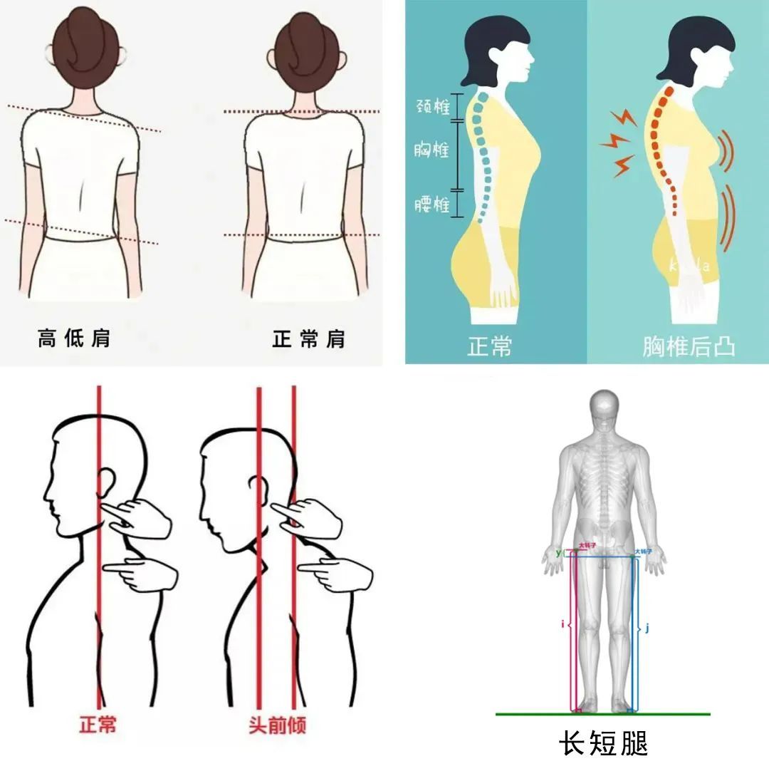 对于孩子来说,好的体态不仅显得挺拔精神、充满自信,还有助于骨骼健康和生长发育。不少家长对身体姿态的认知还停留在“驼背”“高低肩是由于背单肩包”“身姿好不好只是事关气质”等局限范畴。常见的异常身体姿态包括头部前伸、高低肩、驼背(胸椎后凸)、骨盆前倾、平板腰(腰椎曲度变直)等,不仅仅是让孩子的气质和形象大为减分,更重要的是影响生长发育。